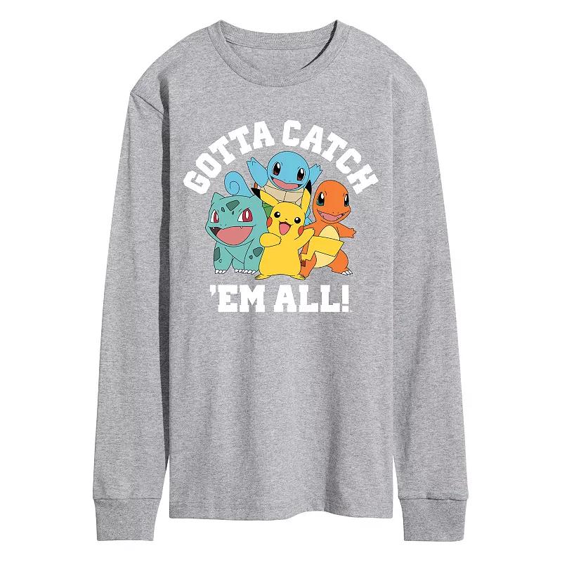 You'll catch 'em all in this fun men's Pokémon Tee. You'll catch 'em all in this fun men's Pokémon Tee. Crewneck Long sleevesFABRIC & CARE Cotton, polyester Machine wash Imported Color: Med Grey. Gender: male. Age Group: adult. Pattern: Graphic. Material: Cotton Blend.