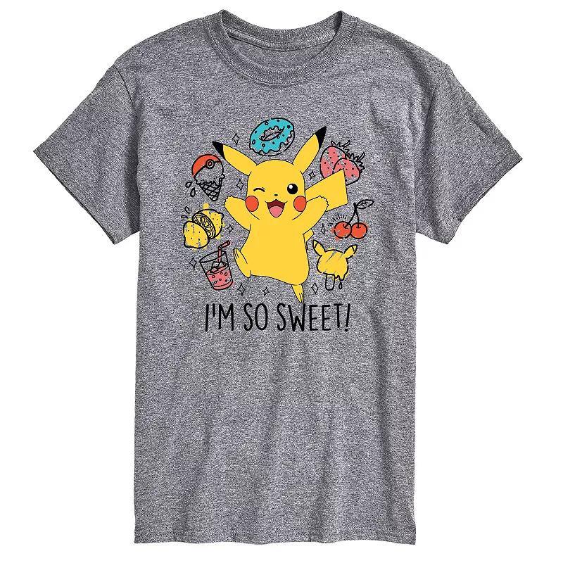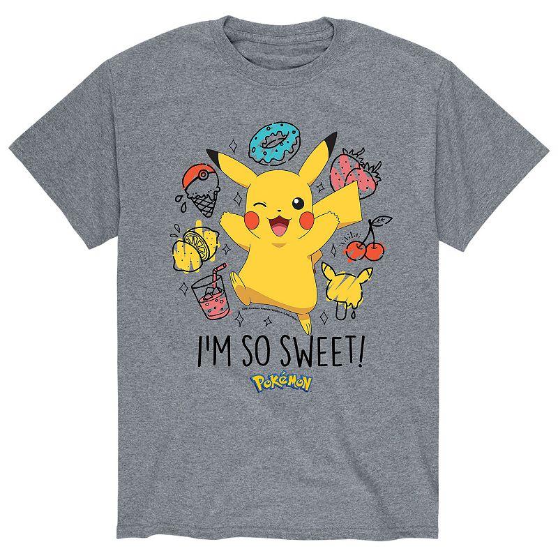 Give a wink with this cheeky Im So Sweet Pikachu from Pokmon dessert mens graphic tee. Give a wink with this cheeky Im So Sweet Pikachu from Pokmon dessert mens graphic tee. Crewneck Short sleevesFABRIC & CARE White: cotton; Gray: cotton, polyester Machine wash Imported Color: Med Grey. Gender: male. Age Group: adult. Material: Cotton Blend.