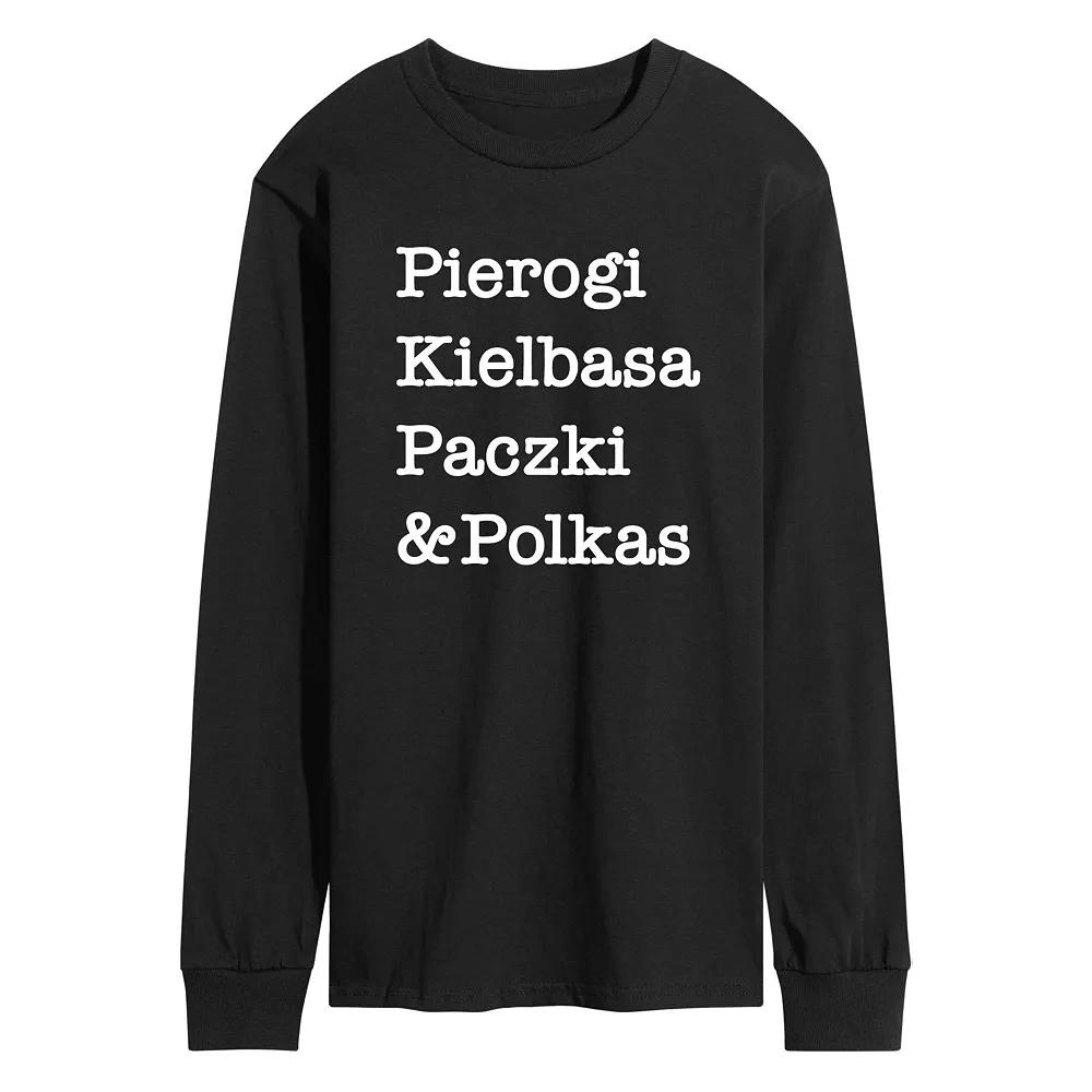 Polka your way into some tasty Polish food with this mens tee. Polka your way into some tasty Polish food with this mens tee. Crew neck Long sleevesFABRIC & CARE Cotton Machine wash Imported Color: Black. Gender: male. Age Group: adult. Pattern: Graphic.