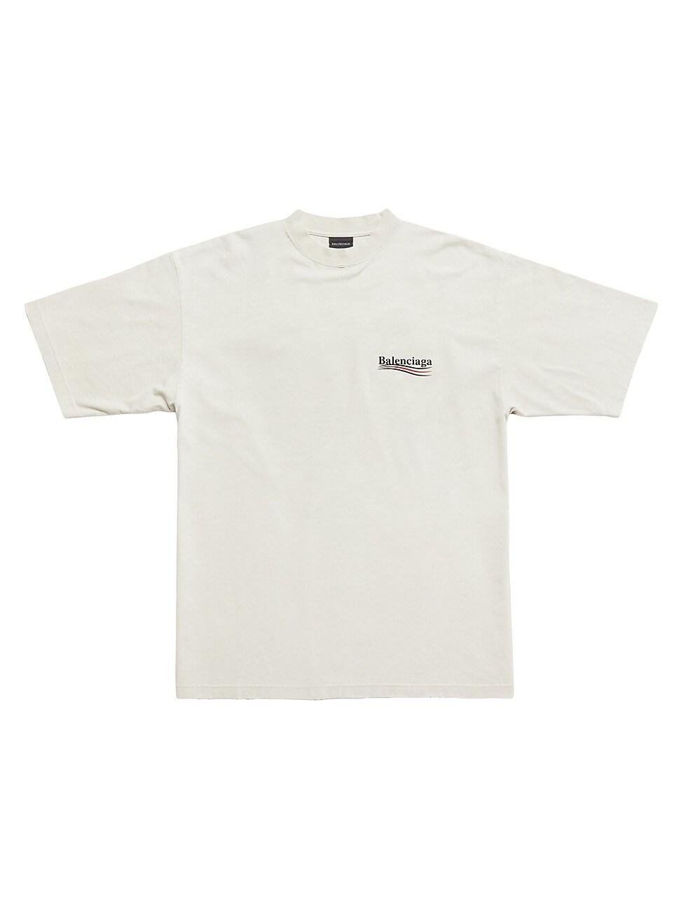 Political Campaign T-Shirt Large Fit in vintage jersey. Vintage jersey Large fit Crewneck Short sleeves Political Campaign artwork printed at chest and back Crackling effect artwork Worn-out effect Cold machine wash Made in Portugal SIZE: Model is 185 cm / 61 and is wearing a size S. Lsd Rtw - Balenciaga Rtw > Balenciaga > Saks Fifth Avenue > Barneys. Balenciaga. Color: Blue Sky. Size: XXS.