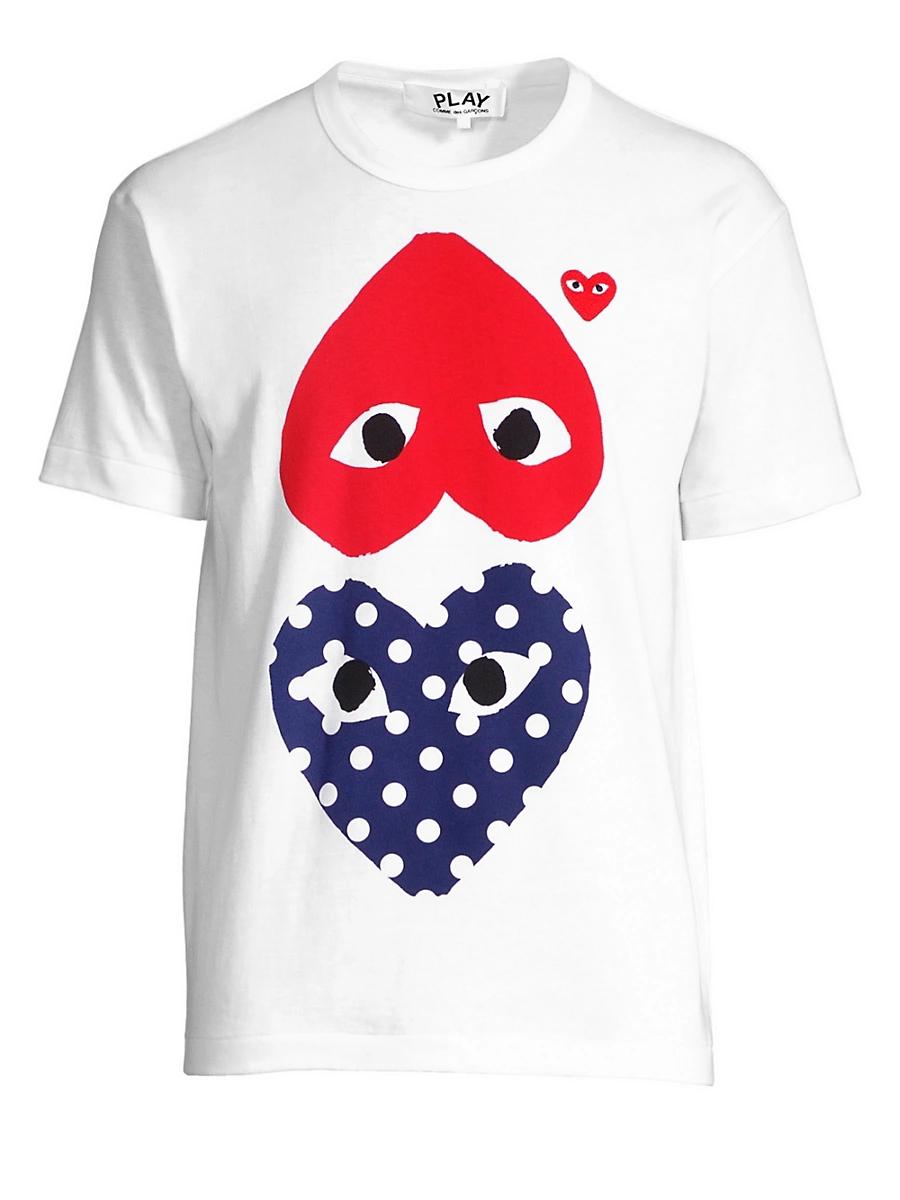 Polka dot heart merges with varied logo hearts on basic tee Crewneck Short sleeves Pullover style About 27 from shoulder to hem Cotton Machine wash Imported Please note: This style runs small. Order one size up. ABOUT THE BRAND From the artistic mind of Comme des Garons designer Rei Kawakubo comes a casual, playful line for women, men and kids. The signature red heart, complete with instantly recognizable wide eyes, is emblazoned on striped and solid T-shirts, knitwear and sneakers. Mens Adv Contemporary - Advanced Contemp Collect > Comme Des Garons Play > Saks Fifth Avenue > Barneys. Comme des Garons PLAY. Color: White. Size: Large.