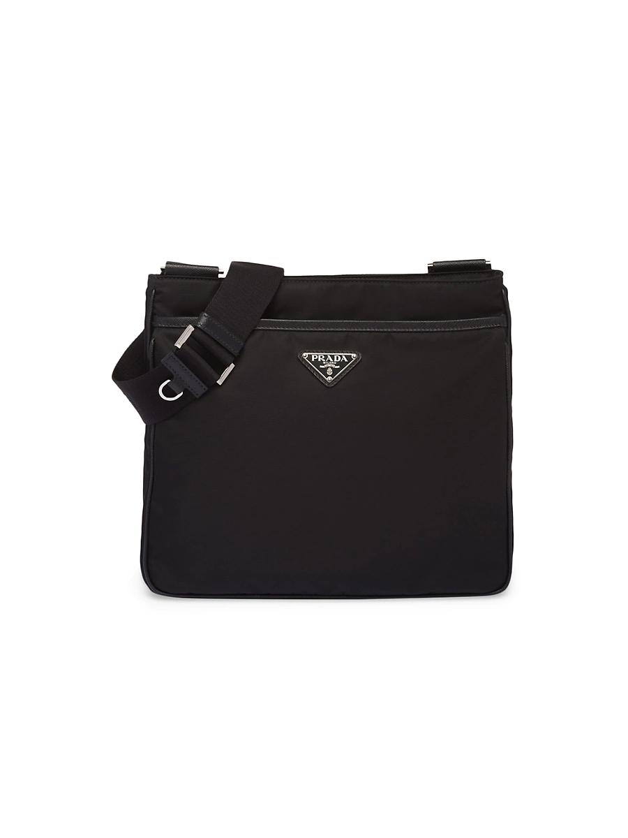 A slim silhouette with a square shape distinguishes this bag made of Saffiano leather and Re-Nylon, a regenerated yarn produced from plastic materials collected in the ocean. Provided with an adjustable woven nylon tape shoulder strap, the accessory with zipper closure is made iconic by the enameled metal triangle logo applied on the front. Adjustable woven nylon tape and leather shoulder strap Enameled metal triangle logo on the front Zipper closure One external zipper pocket Inner zipper pocket Re-Nylon logo-print lining Imported This product is not eligible for extended holiday returns SIZE: 28 W x 25 H x 6 L (cm). Lsd Rtw - Prada Rtw > Prada > Saks Fifth Avenue > Barneys. Prada. Color: Black.
