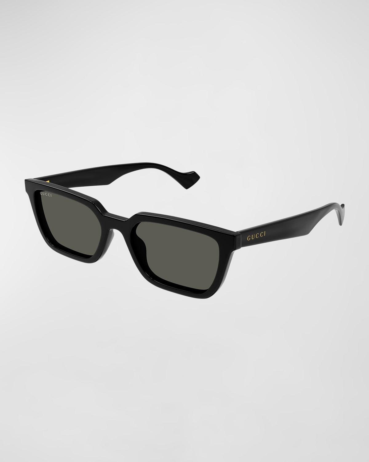 Gucci rectangle sunglasses in plastic features logo detailing at the temple Eye/bridge/temple (in mm): 5519145 Solid lenses Saddle nose bridge Tapered arms Plastic 100% UVA/UVB protection Made in Italy
