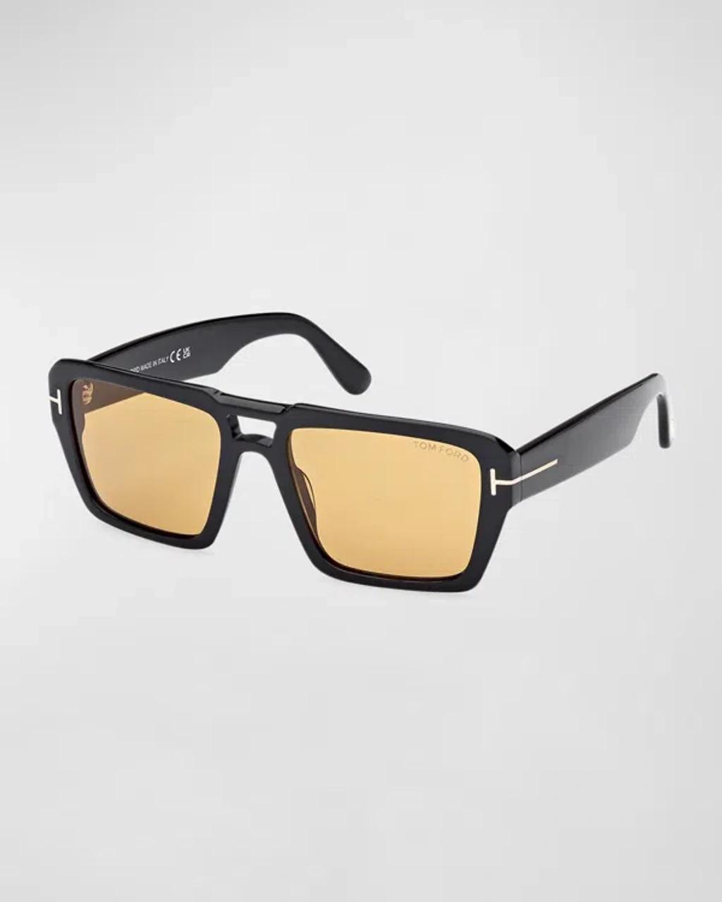 TOM FORD "Redford" rectangle sunglasses in acetate Lens/bridge/temple (in mm): 56-19-145 Solid-color lenses Logo script on the left lens Double nose bridge Metal T-temple decoration Tapered arms Branded curved temple tips Acetate 100% UVA/UVB protection Made in Italy Proposition 65 warning for California residents