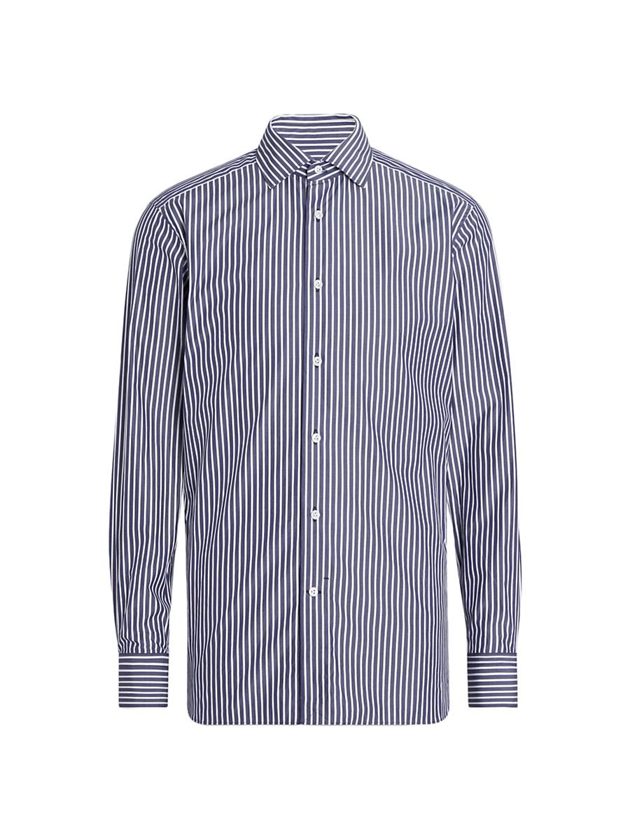 This macro-striped shirt is made from ultra-soft Centoventimila cotton. Regular fit Tailoring shirt Semi-spread collar Standard cuffs Button closure Rounded hem Macro-striped pattern Lightweight fusing 79 cm length on size 39 Made in Italy FABRIC DETAILS 100% Cotton Max wash temp 40C. Do not bleach. Do not tumble dry. Professional dry cleaning in tetrachloroethene and hydrocarbons. Lsd Mens - Zegna Rtw > Zegna > Saks Fifth Avenue > Barneys. ZEGNA. Color: Avio Blue White. Size: 15.
