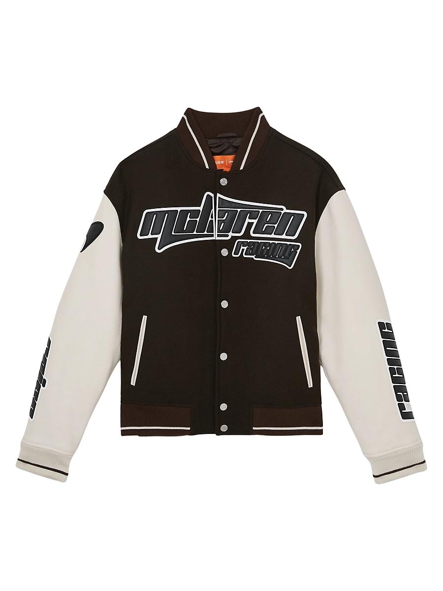 From the Reiss x McLaren F1 Team Collaboration. This Circuit bomber jacket features a wool and nylon body and leather sleeves detailed with logos. Baseball collar Long sleeves Side slant pockets Rib-knit trim Front snap closure 78% wool/ 28% nylon Sleeves: Leather Trims: 96% polyester/ 4% elastane Dry clean Imported SIZE & FIT Model measurements: 62 tall, 40 chest, 31 waist Model is wearing a US size Medium. Mens Modern Coll & Outer - Modern Collections > Reiss > Saks Fifth Avenue > Barneys. Reiss. Color: Black. Size: XXL.