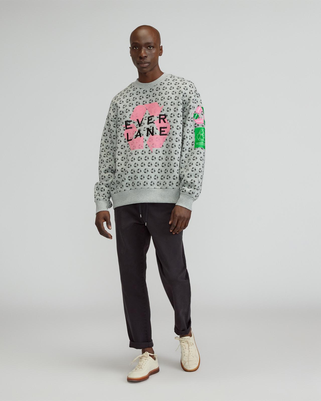 Featuring everything we love from a crew sweater; classic crew neckline, dropped shoulders, ribbed side panels, ribbed cuffs and hem. The ReTrack Crewneck Sweatshirt is an everyday essential crafted in our new recycled fleece fabric. We remixed our ReTrack family with a more premium cotton, think a softer, thicker, warmer material, with a relaxed fit—perfect for lounging around or running errands on cooler days.