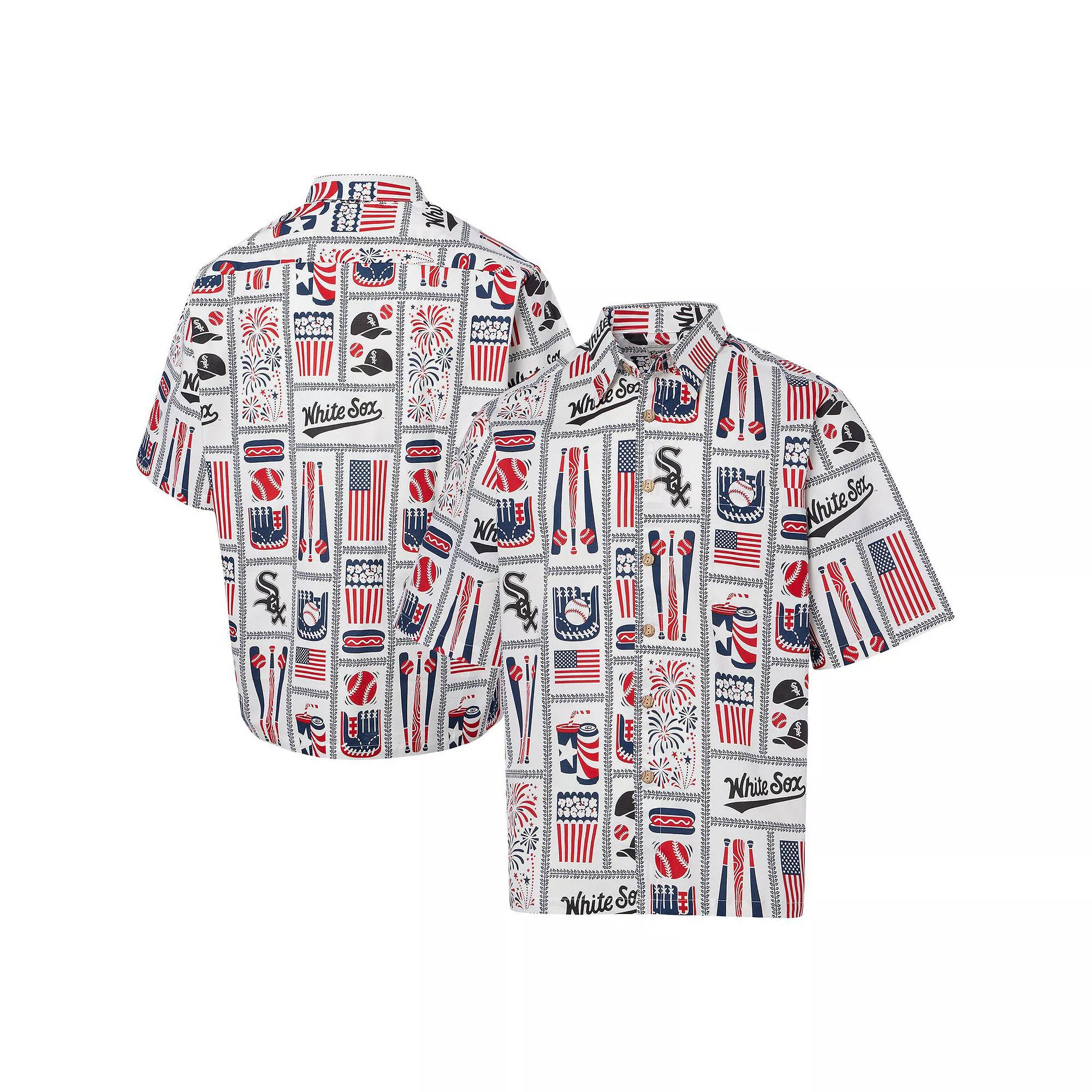 Leave no doubt that you are the number one Chicago White Sox supporter by adding this Americana shirt from Reyn Spooner to your rotation. It features a thrilling design of ballpark graphics, which includes team logos, baseball gloves, bats, hot dogs, popcorn and so much more. The one-of-a-kind look of this button-up top will quickly make it your go-to option for those warm Chicago White Sox game days. Other Sports Fan Shop (new)