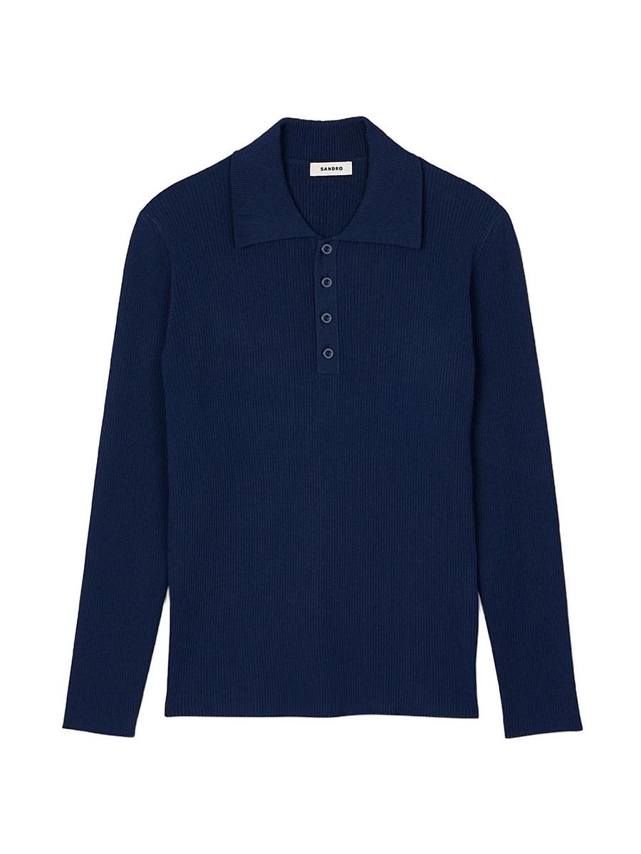 Rib knit polo shirt with long sleeves and button-down collar. Sandro Mens rib knit polo shirt Button-up polo neck Long sleeves Classic fit Main fabric: 60% viscose, 38% polyamide, 2% elastane Tab: 49% viscose, 46% polyamide, 5% elastane Collar: 49% viscose, 46% polyamide, 5% elastane Rib: 60% viscose, 38% polyamide, 2% elastane Imported. Lsd Rtw - Sandro > Sandro > Saks Fifth Avenue > Barneys. Sandro. Color: Royal Blue. Size: Small.