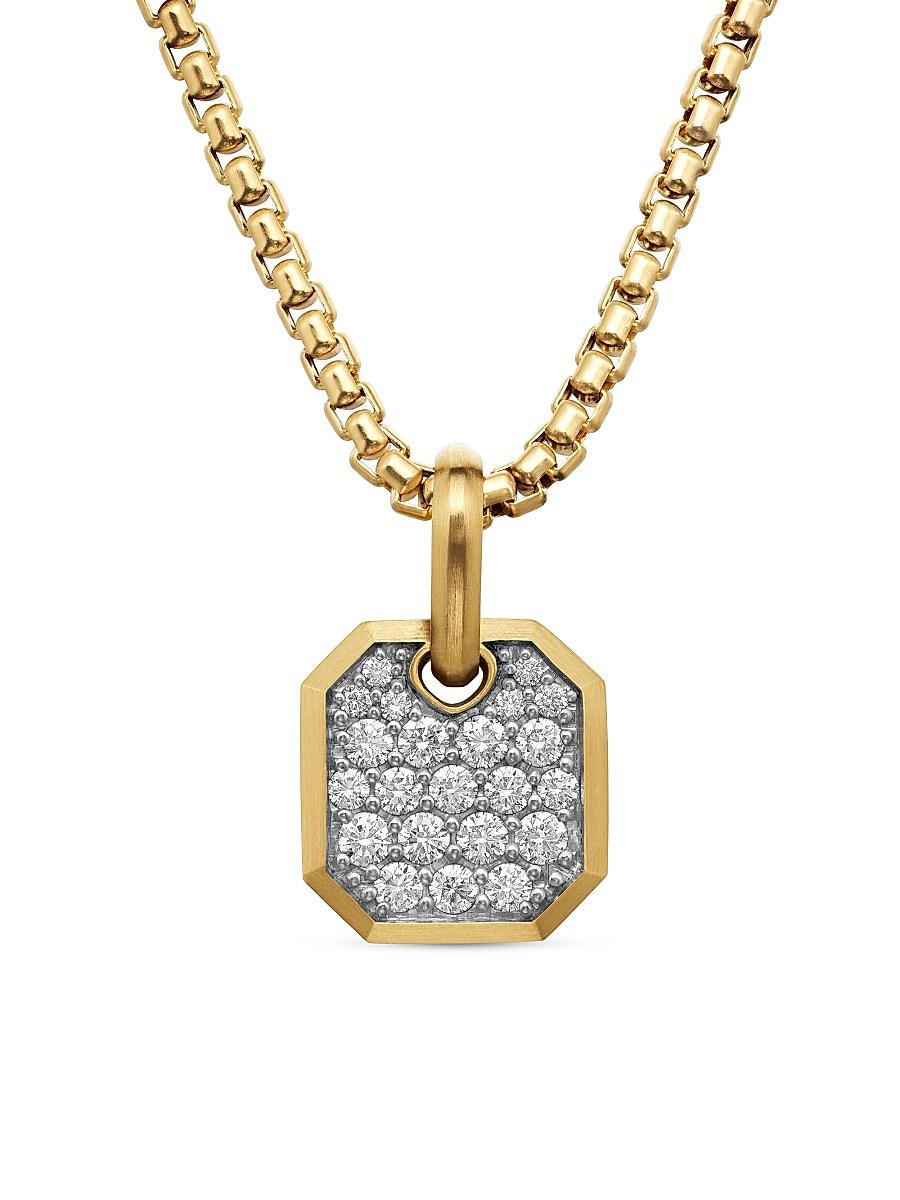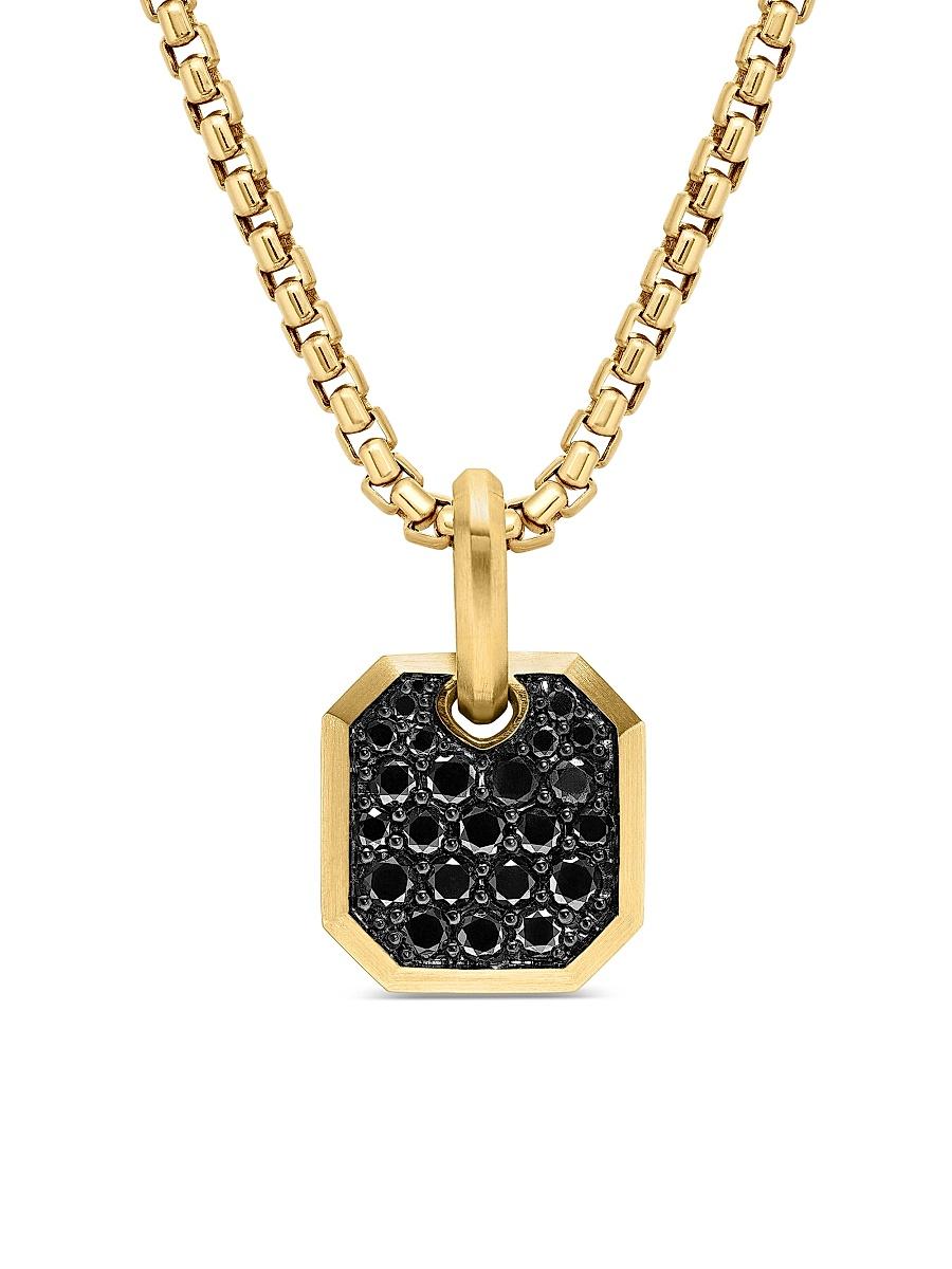 Inspired by clean lines and smooth metal surfaces, these minimalist designs are sculpted with engineered precision. Every pav diamond or colored gemstone is carefully matched for color and hand set a tribute to DY artistry. 18-karat yellow gold Pav black diamonds, 0.90 totat carat weight Pav diamonds, 0.78 total carat weight Amulet, 15 x 14mm Please note: amulet only; chain sold separately Imported ABOUT THE BRAND David, a sculptor, and his wife, Sybil, a painter, launched their innovative je