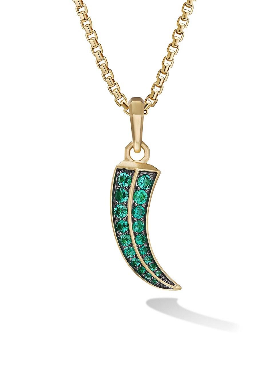 Once linked to spirituality and magic, today’s amulets are expressions of personal style. This collection reflects the modern man’s distinct identities with religious symbols, ancient charms and utilitarian motifs crafted from precious metals and gemstones.18-karat yellow goldPavé emeralds, 0.30 total carat weightAmulet, 37 x 14.6mmPlease note: amulet only; chain sold separatelyImportedABOUT THE BRANDDavid, a sculptor, and his wife, Sybil, a painter, launched their innovative jewelry brand in 1980 in New York City. Since then, the American design house has pioneered cutting-edge collections—from its iconic combination of sterling silver and diamonds to signature pinky rings. Today, with their son Evan, the Yurmans continue to deliver timeless pieces inspired by nature, art, ancient symbols and Manhattan's stunning architecture.