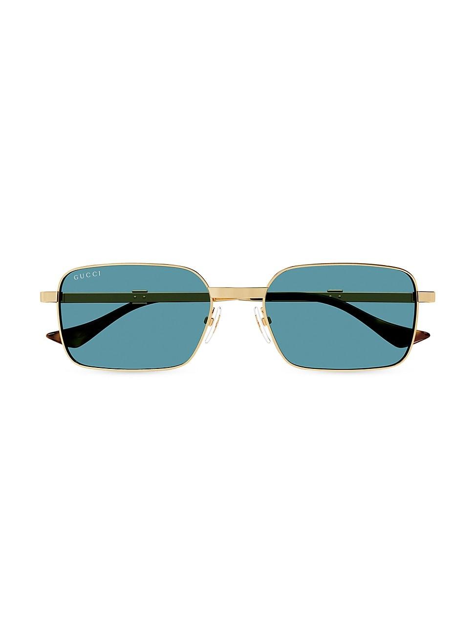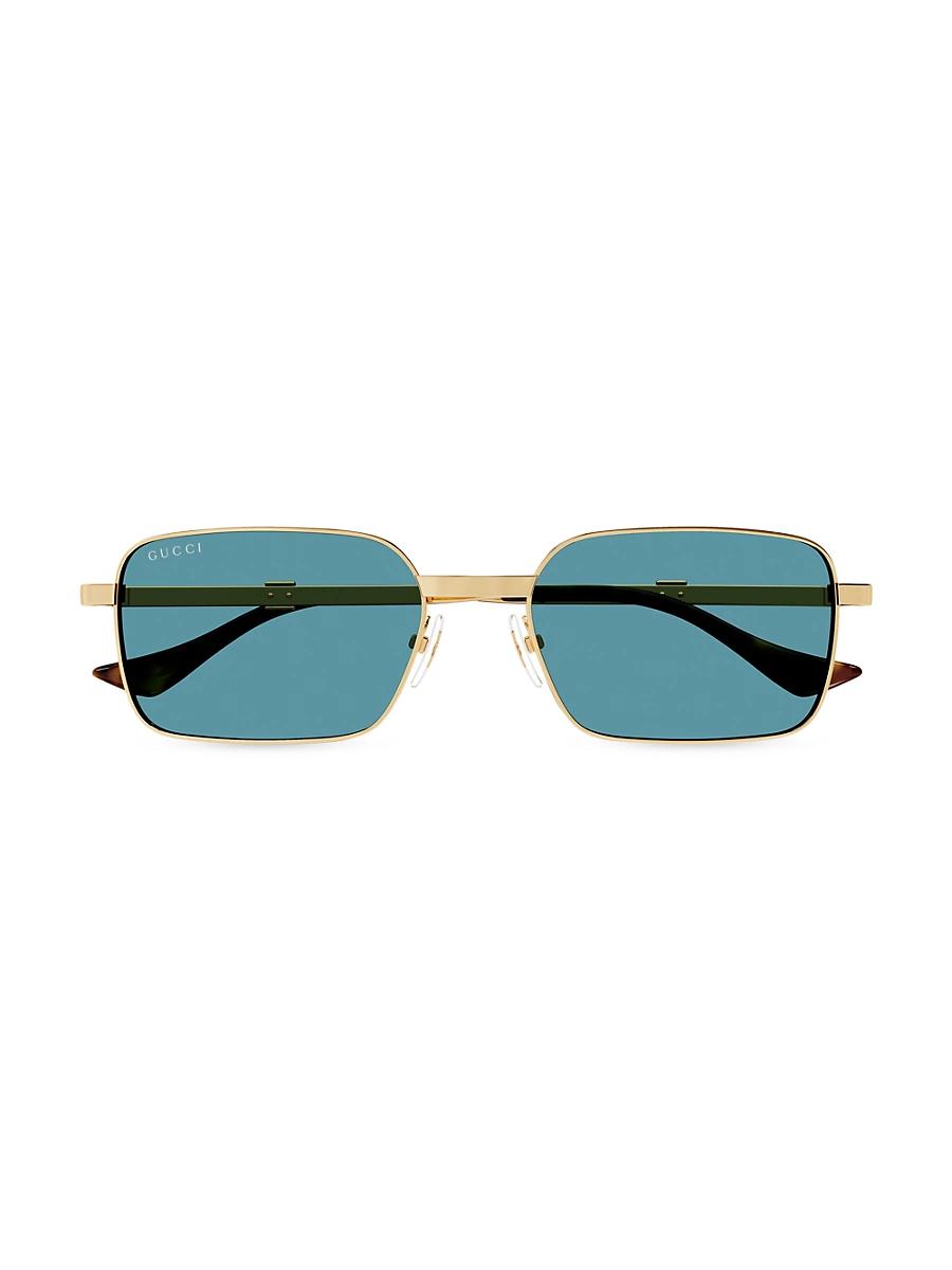 Gucci Gg1495sm rectangle sunglasses in metal Eye/bridge/temple (in mm): 54-20-145 Temples feature an engraved logo with green and web stripes Solid-color lenses Right lens logo script Adjustable nose pads Thin arms Curved, capped temple tips Metal 100% UVA/UVB protection Made in Japan