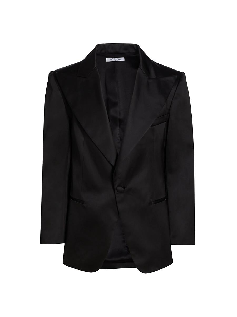 Styled with broad peak lapels, this LaQuan Smith satin suit jacket is expertly tailored with structured shoulders and a single-button closure. Welt pockets complete the look. Peak lapels Long sleeves, button cuffs Chest and side welt pockets Single button closure 47% cotton/53% viscose Dry clean Made in USA SIZE & FIT About 25 from shoulder to hem Model measurements: 62 tall Model is wearing a US size 40. Men Advcd Dsgnr - Advanced Designer Collec > Laquan Smith > Saks Fifth Avenue > Barneys. LaQuan Smith. Color: Black. Size: 40.