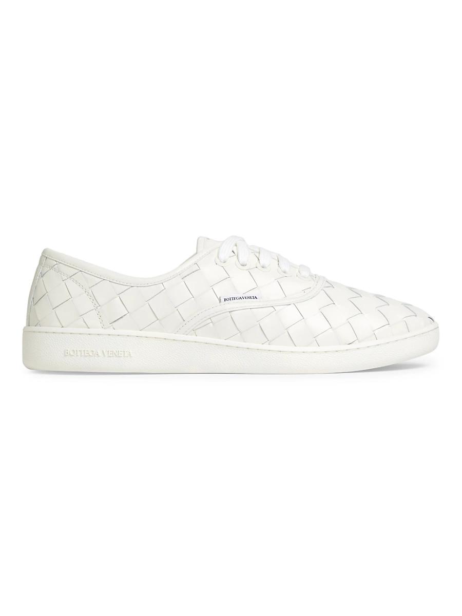 Bottega Venetas Sawyer sneakers feature the brands signature intrecciato weave in rich calfskin leather. Made in Italy, these lace-up sneakers are finished with a durable TPU rubber sole. Almond toe Lace-up style Leather upper TPU rubber sole Made in Italy ABOUT THE BRAND Founded in 1966, the label known for fine Italian craftsmanship with creativity at its core has since catapulted to cult-level status. The houses storied intrecciato pattern in shoes and accessories, alongside its signature minimalist ready-to-wear, have made the label an editor and trendsetter favorite. Mens Shoes - Designer Shoes > Bottega Veneta > Saks Fifth Avenue > Barneys. Bottega Veneta. Color: White. Size: 7.