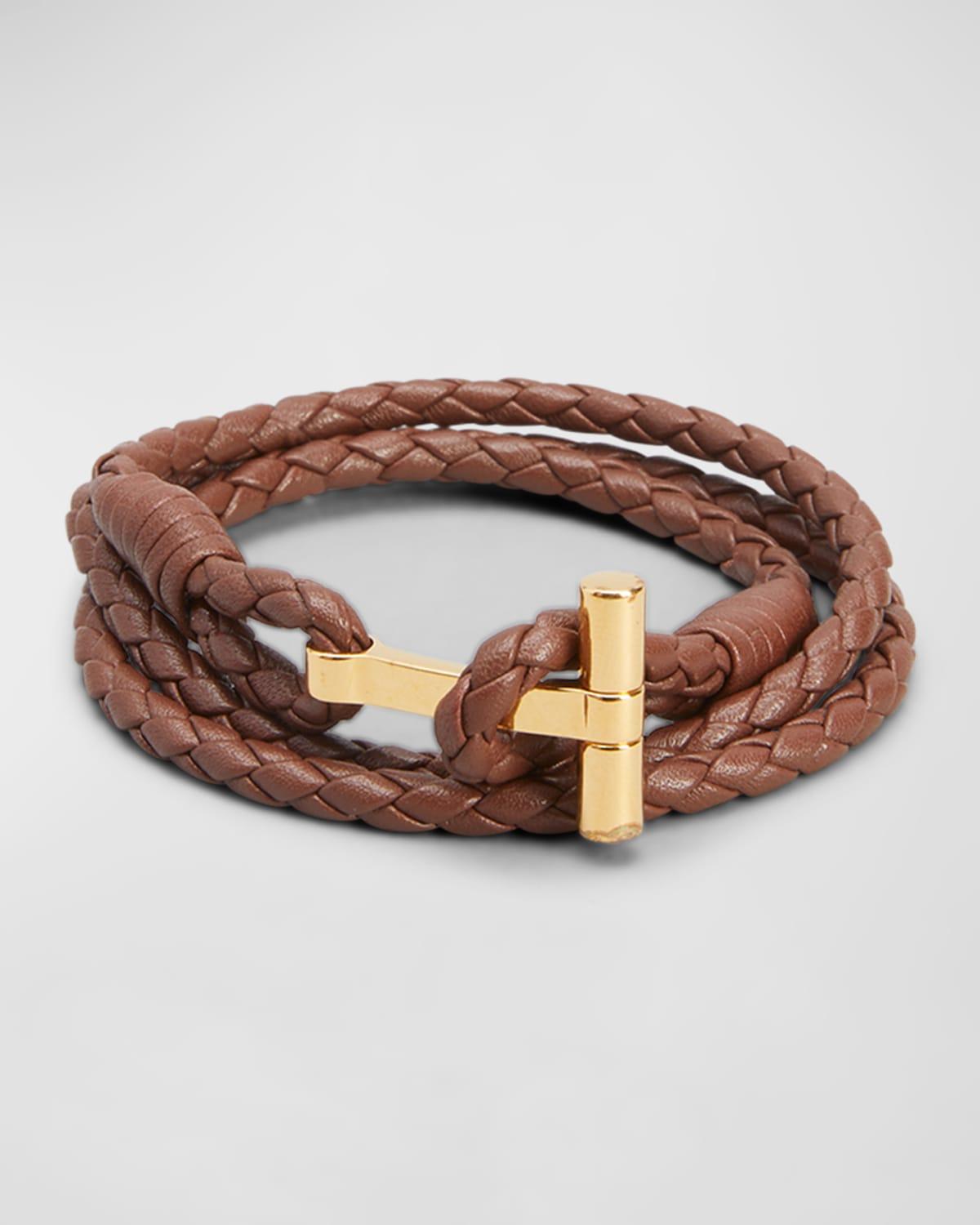 Mens Scoubidou T-Logo Woven Leather Wrap Bracelet