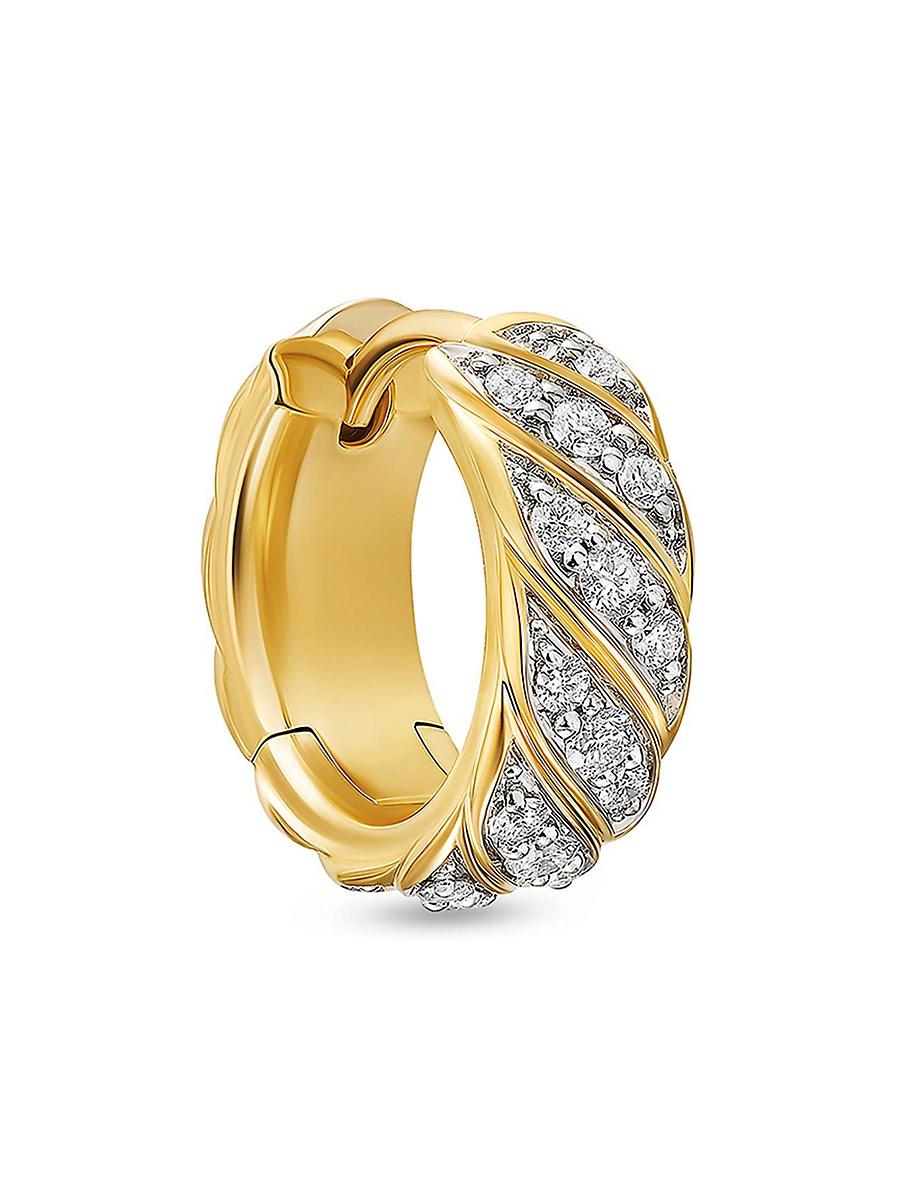 ONLY AT SAKS. In Sculpted Cable, David Yurman transforms his signature design motif into a carved form. The effect is an entrancing wavelike pattern that retains the dimensional look of Cables original helix. 18-karat yellow gold Pav-set diamonds, 0.13 total carat weight Earring, 12.8 x 4.4mm Please note: sold as a single hoop Imported ABOUT THE BRAND David, a sculptor, and his wife, Sybil, a painter, launched their innovative jewelry brand in 1980 in New York City. Since then, the American design house has pioneered cutting-edge collections - from its iconic combination of sterling silver and diamonds to signature pinky rings. Today, with their son Evan, the Yurmans continue to deliver timeless pieces inspired by nature, art, ancient symbols and Manhattans stunning architecture. Lsd Jewelry - David Yurman > David Yurman > Saks Fifth Avenue > Barneys. David Yurman. Color: Gold.