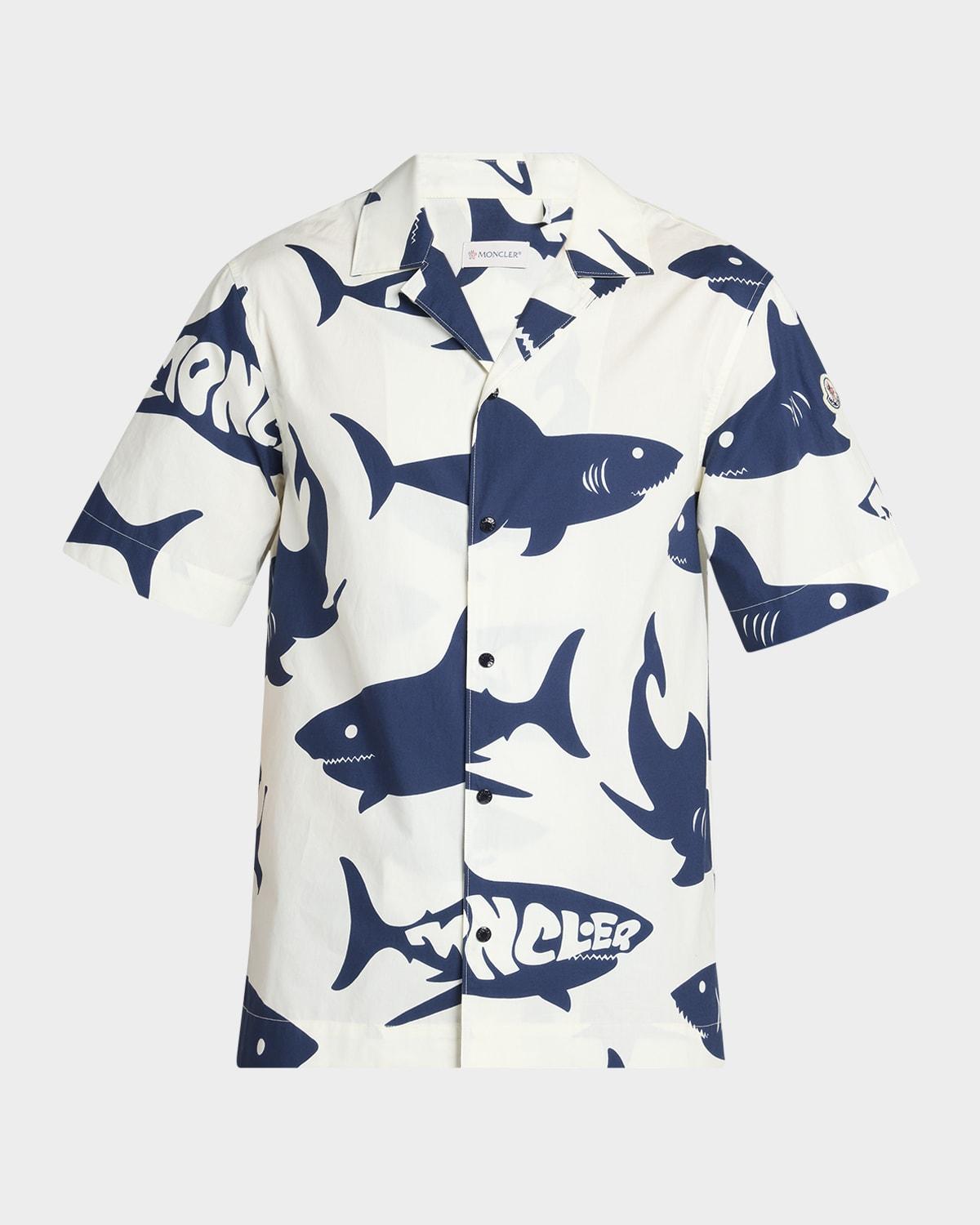 Mens Shark-Print Camp Shirt