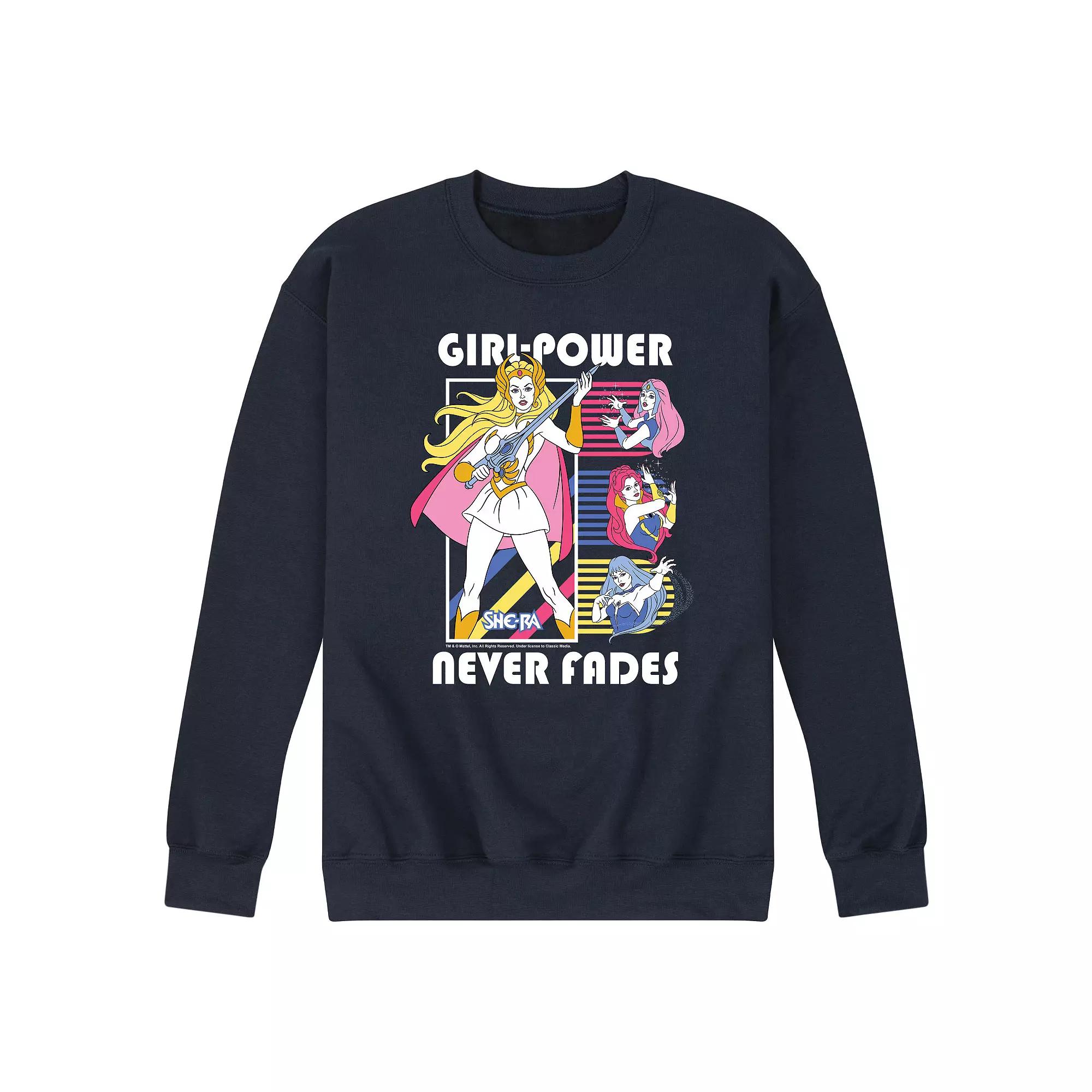 Hell love the look of mens She-Ra Girl Power Never Fades graphic fleece pullover. Hell love the look of mens She-Ra Girl Power Never Fades graphic fleece pullover. FEATURES Crewneck Long sleeveFABRIC & CARE Cotton, polyester Machine wash Imported Color: Navy. Gender: male. Age Group: adult.