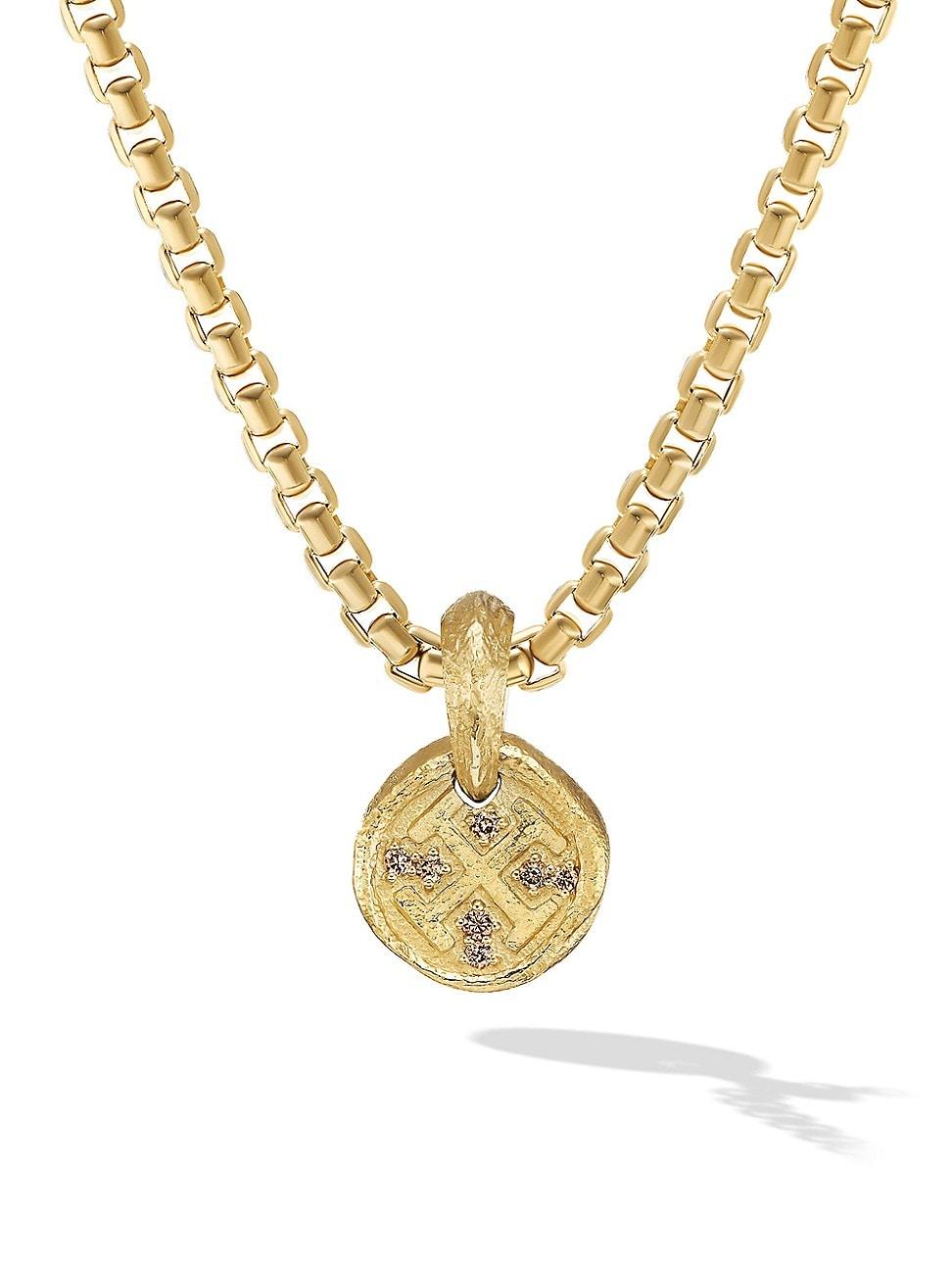 Inspired by artifacts and coins discovered in a sunken pirate ship off of Cape Cod, these designs evoke treasure time-washed by the sea. Artisanal techniques mirror the natural erosion and patinas that occur underwater. 18-karat yellow gold Cognac diamonds, 0.04 total carat weight Amulet, 17 x 10.8mm Please note: amulet only; chain sold separately Imported ABOUT THE BRAND David, a sculptor, and his wife, Sybil, a painter, launched their innovative jewelry brand in 1980 in New York City. Since then, the American design house has pioneered cutting-edge collections - from its iconic combination of sterling silver and diamonds to signature pinky rings. Today, with their son Evan, the Yurmans continue to deliver timeless pieces inspired by nature, art, ancient symbols and Manhattans stunning architecture. Lsd Jewelry - David Yurman > David Yurman > Saks Fifth Avenue > Barneys. David Yurman. Color: Cognac Diamond.