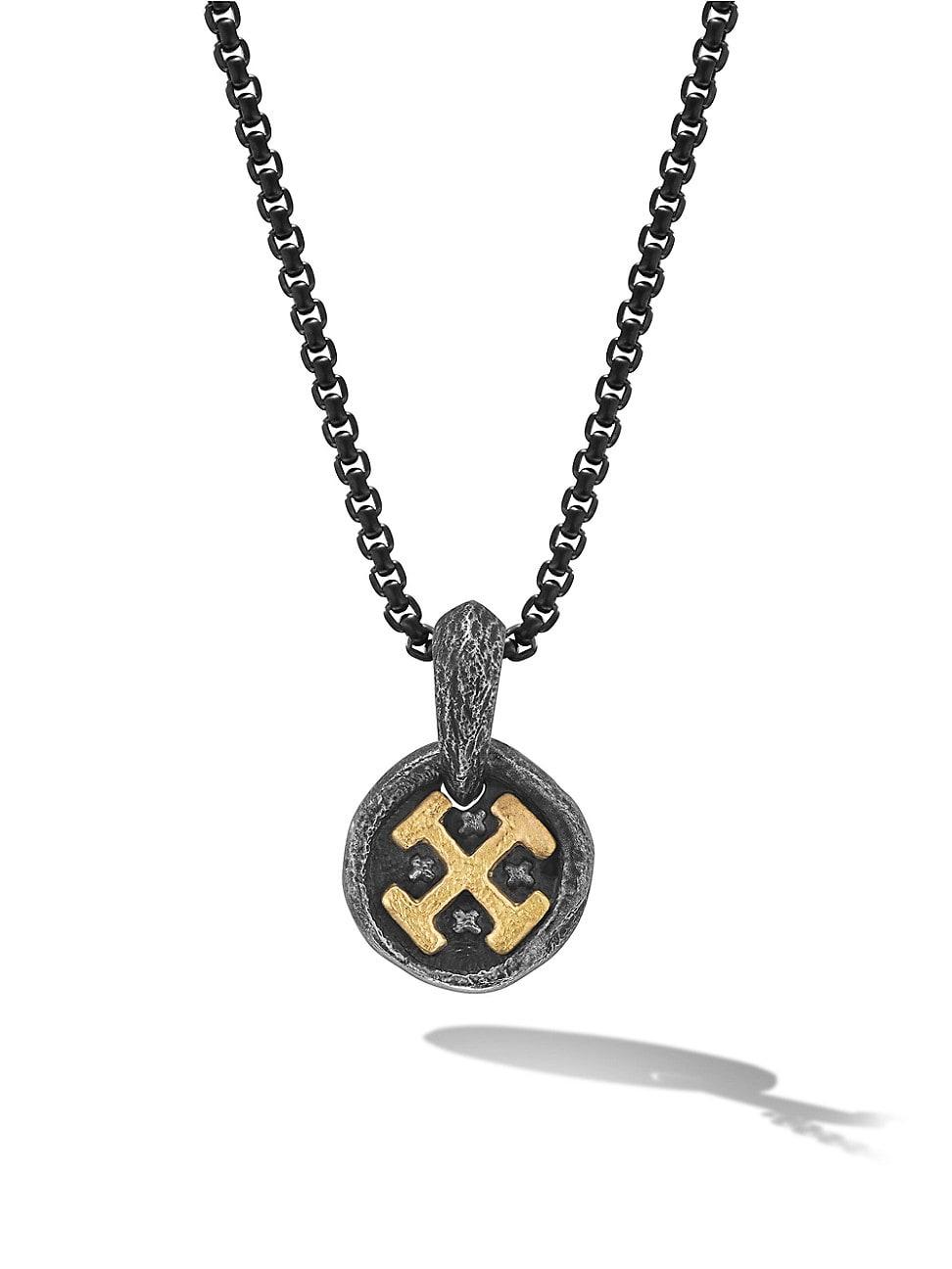 Mens Shipwreck Coin Amulet in Sterling Silver with 18K Yellow Gold, 17MM