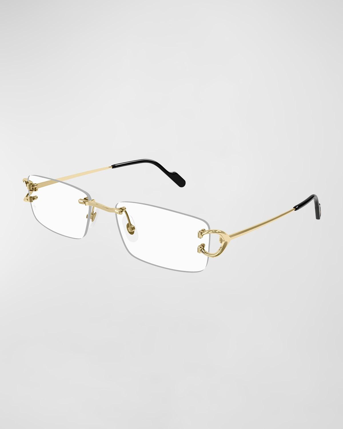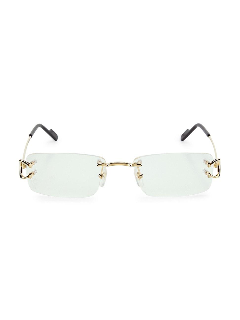 From the Signature C Collection. Cartiers Rimless Rectangular Eyeglasses are crafted of 24K-gold-plated metal. These readers feature anti-reflective lenses and the brand logo at the temples. Anti-reflective lenses 24K gold-plated metal Made in France SIZE 56mm lens width 19mm bridge width 145mm temple length. Soft Accessories - Men Sunglasses > Cartier > Saks Fifth Avenue > Barneys. Cartier. Color: Gold.