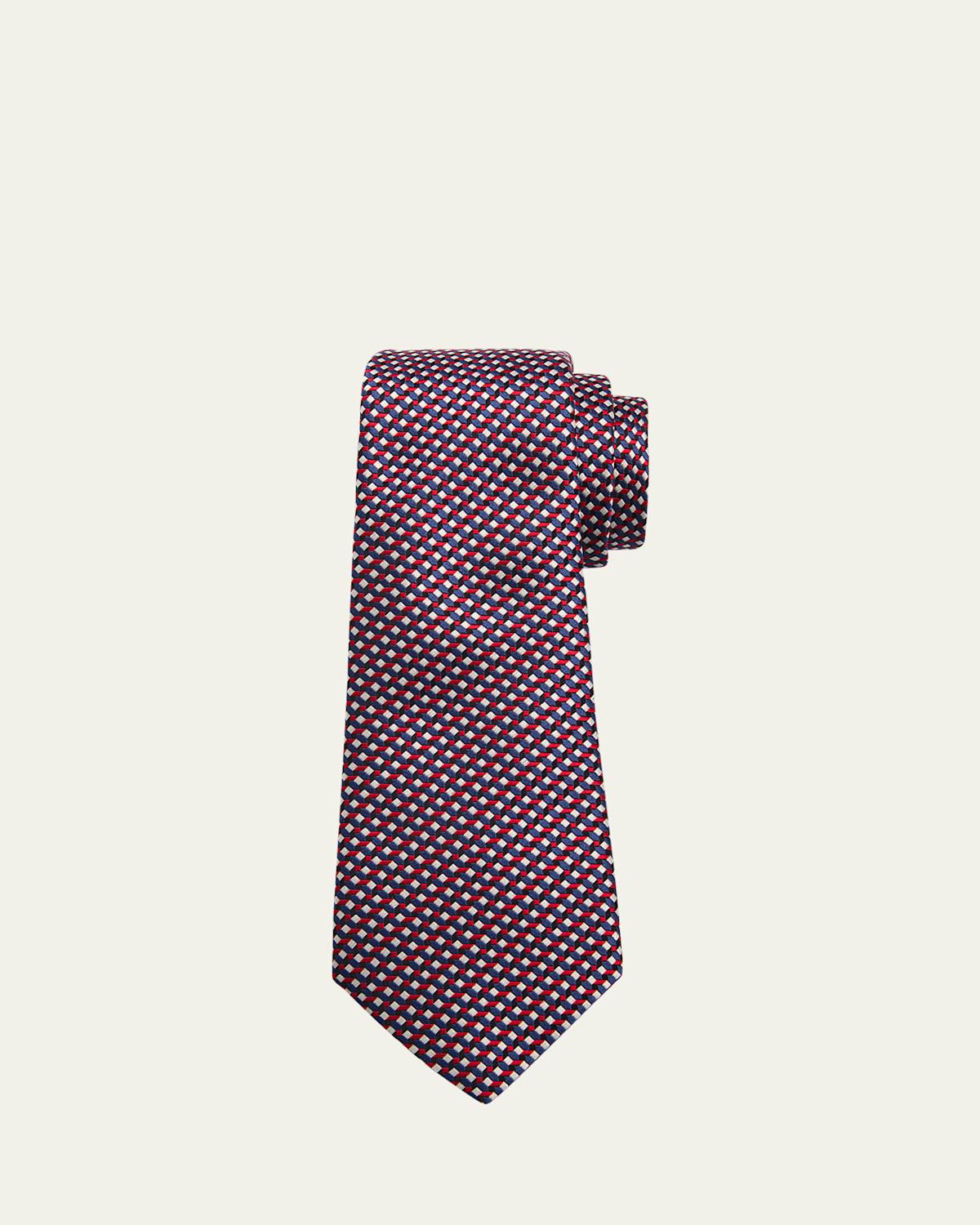 Giorgio Armani tie features a geometric jacquard pattern Approx. 3.15 wide Self-tie style Silk Dry clean Made in Italy