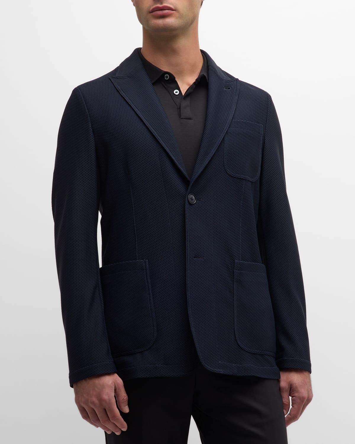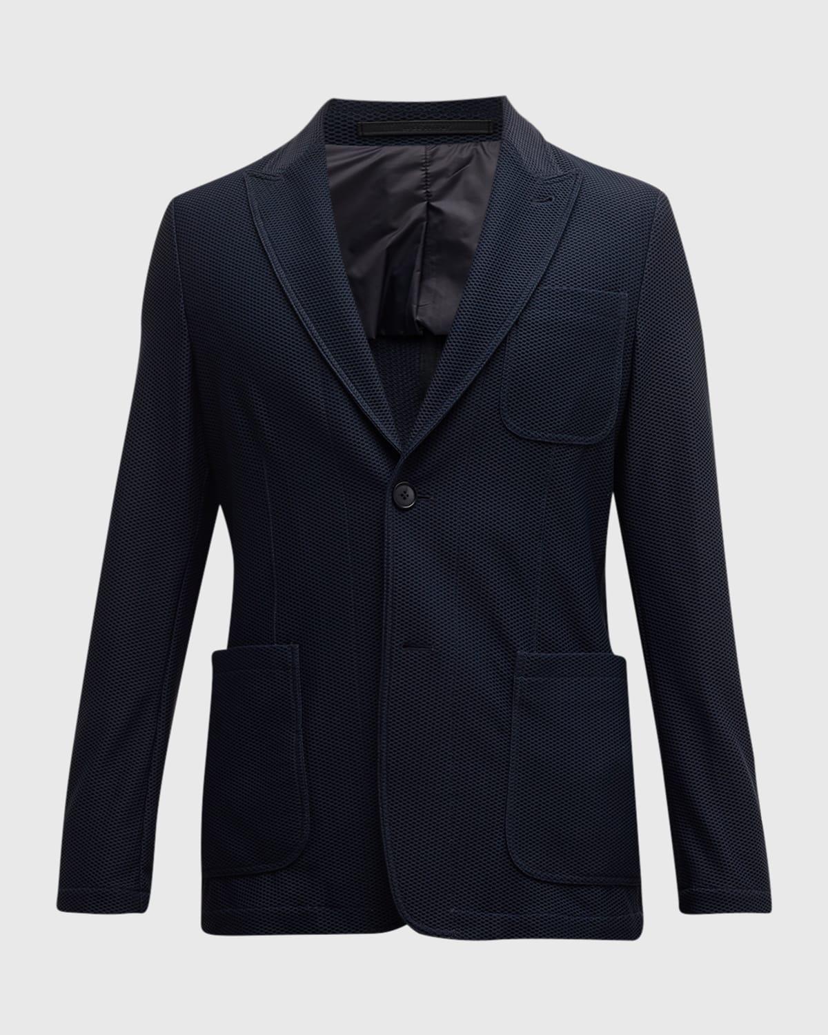Giorgio Armani Icon sport coat in waffle-texturedjersey fabric Peak lapels Two-button front Left lapel buttonhole Three front patch pockets Internal breast pocket Long sleeves Four-button cuffs Nylon/polyamide/elastane Lining: Nylon Dry clean Made in Italy
