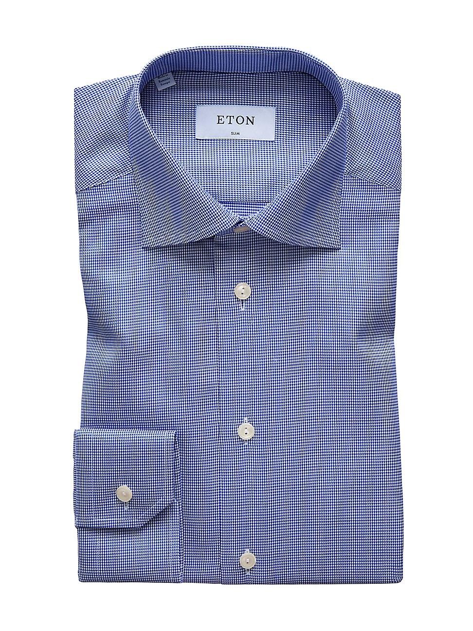 This slim design with classic houndstooth print is garment-washed for a soft feel and relaxed appearance while still maintaining Etons core value of uncompromising quality. Spread collar with removable collar stays Long sleeves Rounded buttoned cuffs Button front Cotton Machine wash Imported SIZE & FIT Slim fit About 30 from shoulder to hem For basic alterations and hemming, book an appointment online at your local Saks Fifth Avenue location. Men Luxury Coll - Eton > Eton > Saks Fifth Avenue > Barneys. Eton. Color: Blue. Size: 14.5.