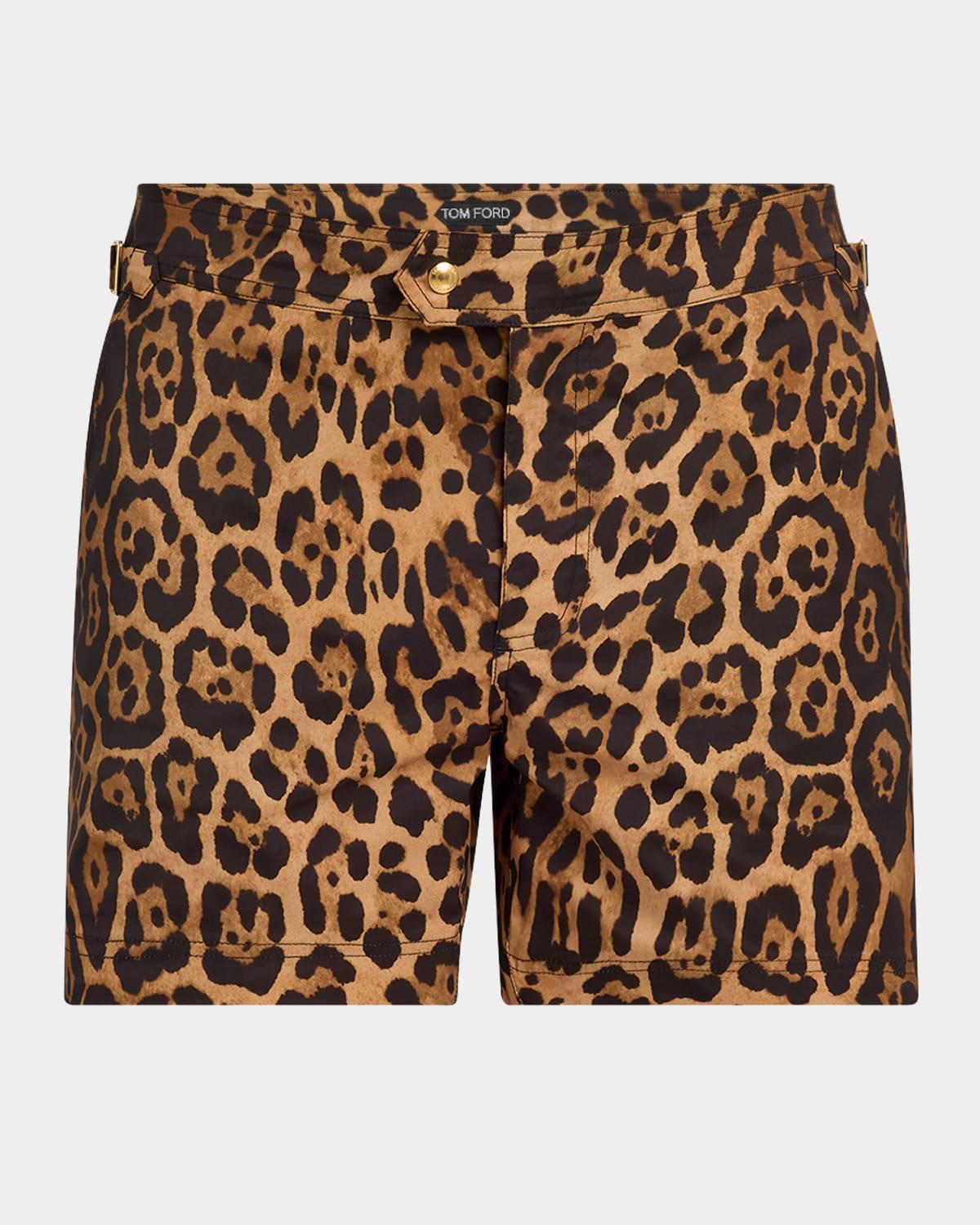TOM FORD swim shorts with a leopard print Regular rise Side slip pockets Fitted through slim legs Side adjusters Snap front Polyester Lining: Nylon Professional cleaning recommended Made in Italy