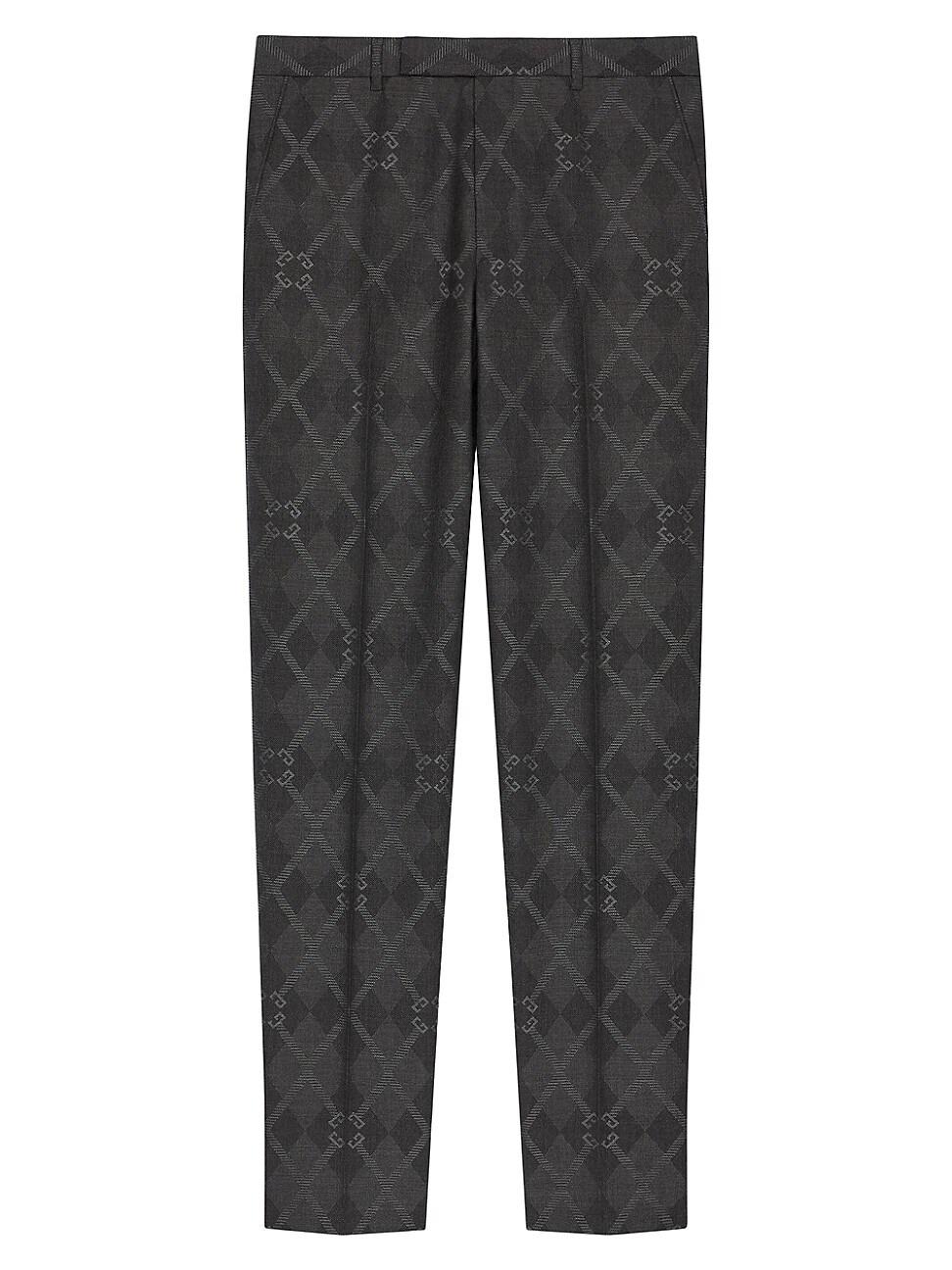Slim fit tailored pants in monogram 72 jacquard. Tailored pants in wool Zipped closure with hook Argyle pattern with monogram 72 jacquard Two side pockets Two back pockets Slim fit Composition: 100% wool Lining: 60% acetate, 40% viscose Made in Italy. Lsd Rtw - Givenchy Rtw > Givenchy > Saks Fifth Avenue > Barneys. Givenchy. Color: Charcoal. Size: 34.