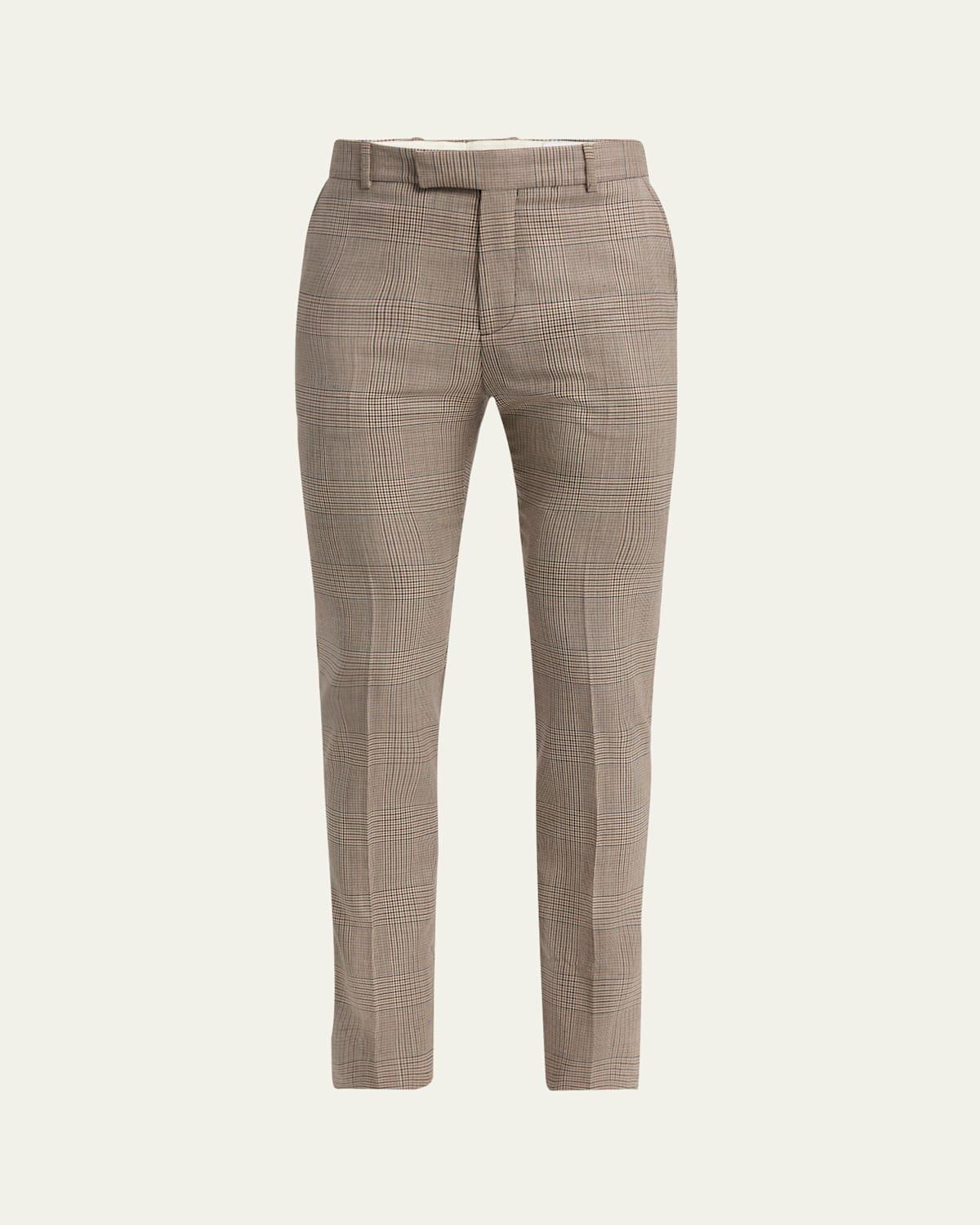 Mens Slim Plaid Cigarette Trousers