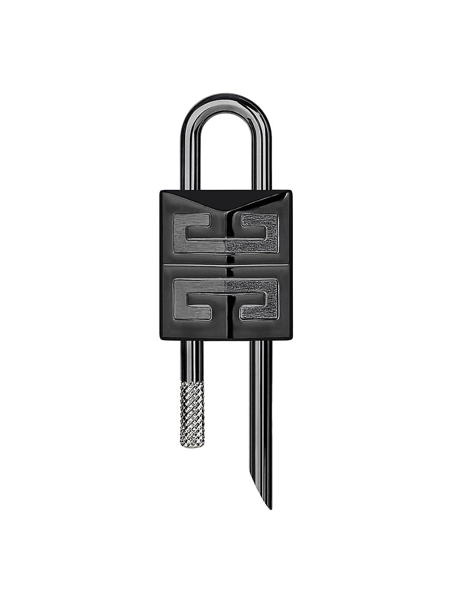 Small 4G padlock in two tone metal. Small padlock in polished, brushed and guilloched-effect metal 4G emblem engraved on the front GIVENCHY signature engraved on the side and on the back Composition:90% Aluminum, 10% Brass Dimensions: 1.2 in x 3.7 in x 0.4 in Made in Italy. Lsd Rtw - Givenchy Rtw > Givenchy > Saks Fifth Avenue > Barneys. Givenchy. Color: Black.