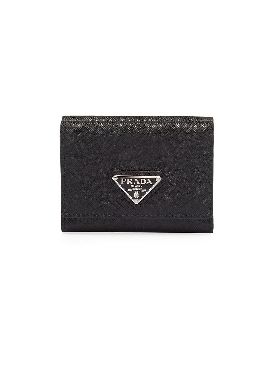 Sleek lines and the iconic texture of Saffiano leather characterize this wallet with the triangle logo on the front. The interior comes with pockets and compartments. Snap closure Enameled metal triangle logo Three card slots One bill compartment External coin pocket with flap Moir and Saffiano leather lining Saffiano leather Made in Italy 3.7 W x 2.9 H. Lsd Handbags - Prada Handbags Access > Prada > Saks Fifth Avenue > Barneys. Prada. Color: Black.
