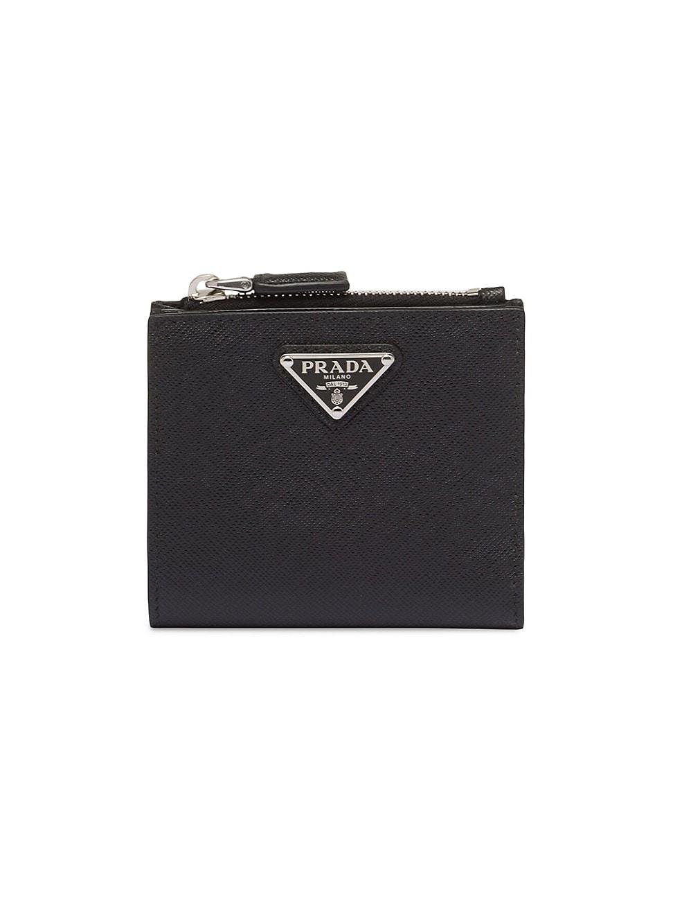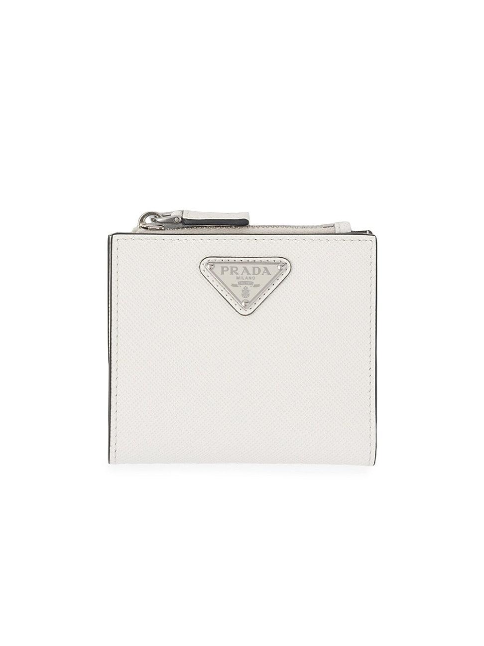 Sleek lines and the iconic texture of Saffiano leather characterize this wallet with the triangle logo on the front. The interior comes with pockets and compartments. Snap closure Enameled metal triangle logo Four card slots One bill compartment Two internal pockets External coin pocket with zipper Moire and Saffiano leather lining Imported SIZE: 10 W x 9 H cm / 4 W x 3.5 H. Lsd Rtw - Prada Rtw > Prada > Saks Fifth Avenue > Barneys. Prada. Color: White.