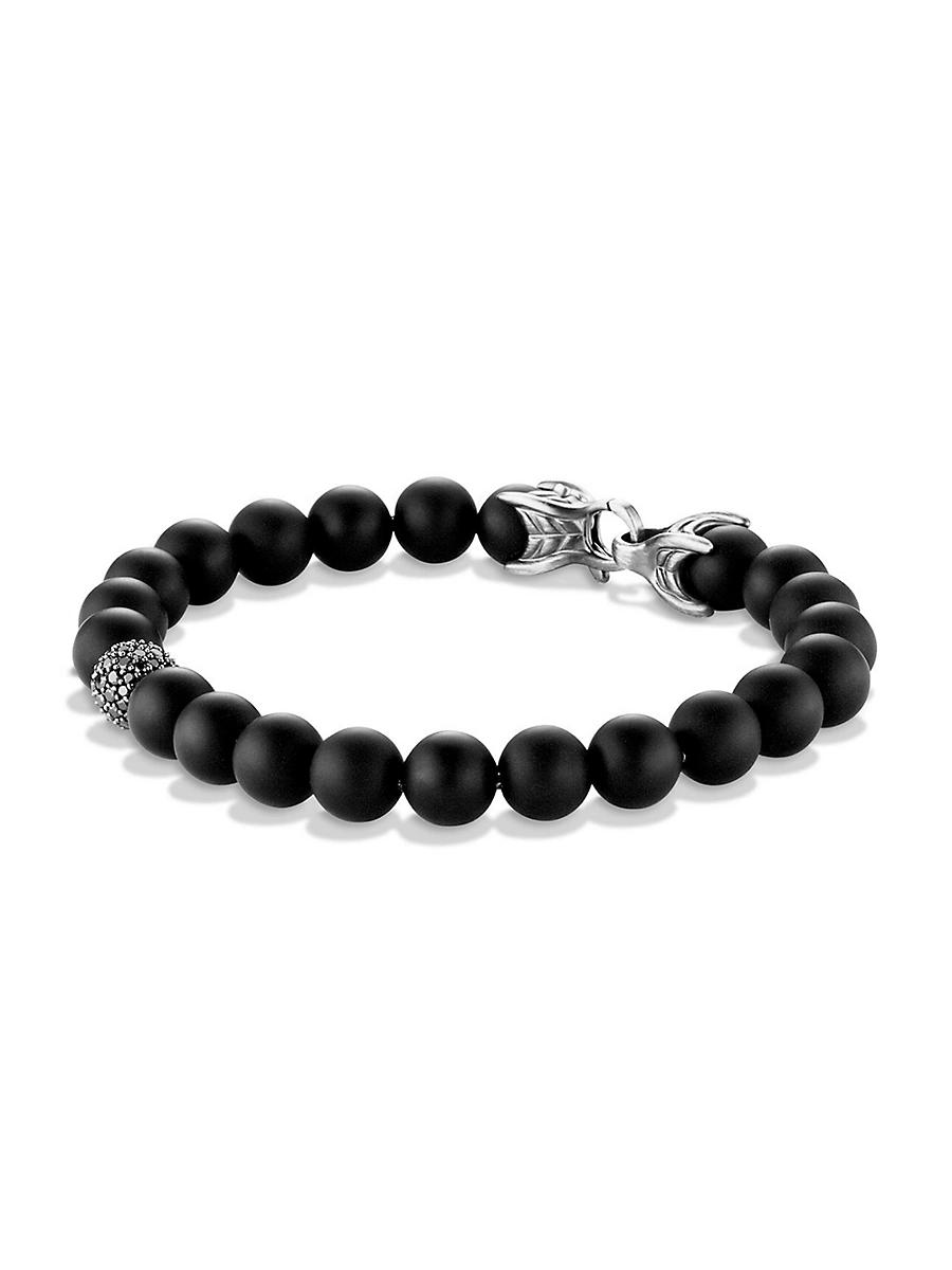 Inspired by the prayer beads found in many cultures, these meaningful designs feature a variety of smooth, vividly colored stones, representing the union of symbolism and style. Sterling silver Black onyx Pav black diamonds, 0.82 total carat weight Bracelet, 8mm Lobster clasp Made in USA ABOUT THE BRAND David, a sculptor, and his wife, Sybil, a painter, launched their innovative jewelry brand in 1980 in New York City. Since then, the American design house has pioneered cutting-edge collections - from its iconic combination of sterling silver and diamonds to signature pinky rings. Today, with their son Evan, the Yurmans continue to deliver timeless pieces inspired by nature, art, ancient symbols and Manhattans stunning architecture. Lsd Jewelry - David Yurman > David Yurman > Saks Fifth Avenue > Barneys. David Yurman. Color: Black Onyx. Size: 8.5.
