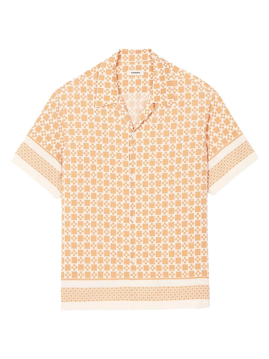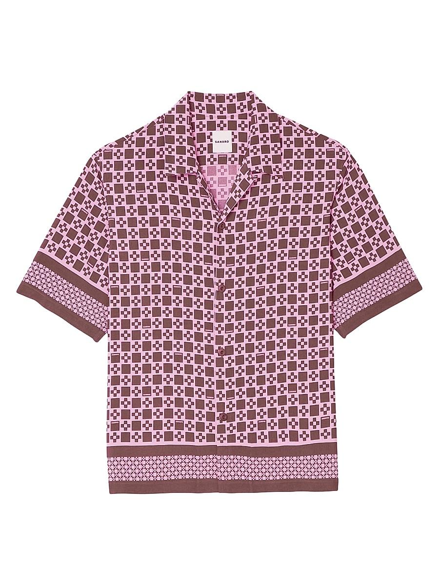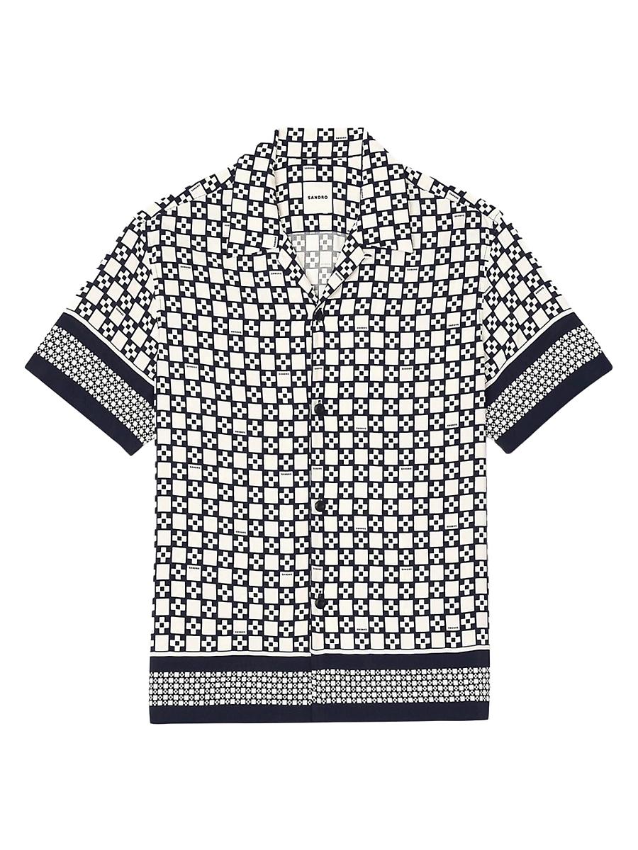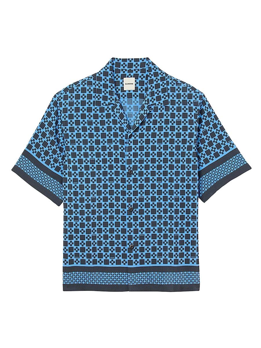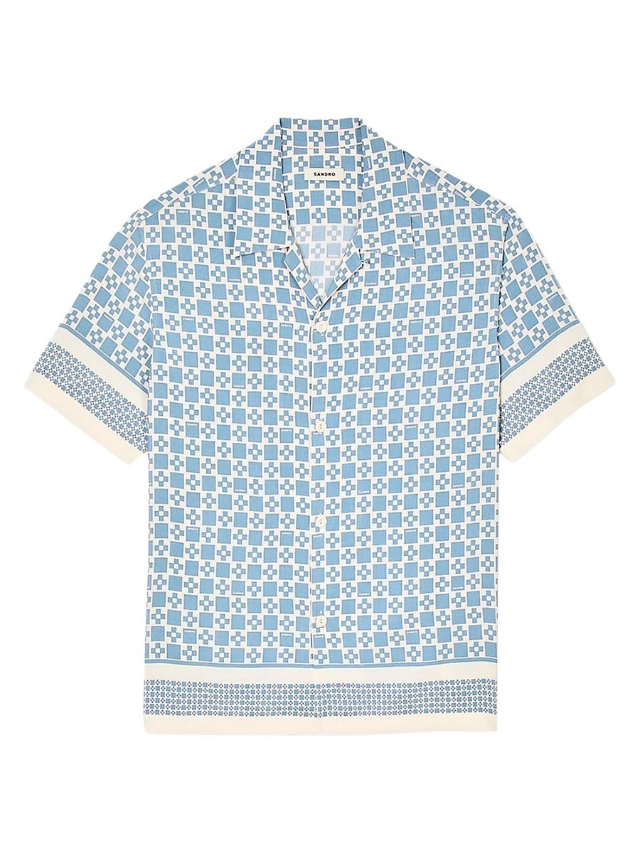 Flowing shirt with a square cross motif, featuring a shark collar, short sleeves and button fastening. Sandro Mens loose-fit shirt Square cross motif Shark collar Button fastening Short sleeves Designed for a loose fit Main fabric: 100% viscose Imported. Lsd Rtw - Sandro > Sandro > Saks Fifth Avenue > Barneys. Sandro. Color: Blue Sky. Size: Medium.