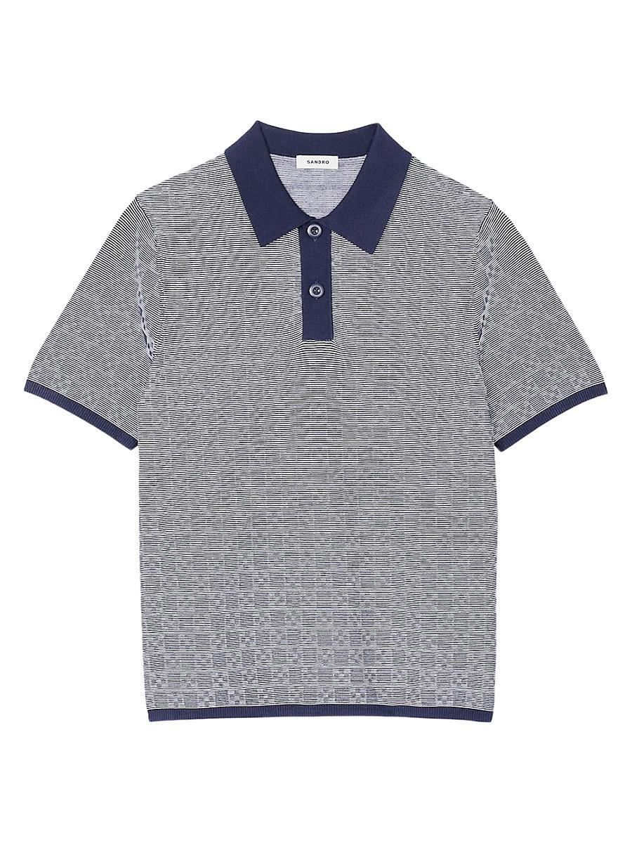 Square Cross jacquard polo shirt with short sleeves and button-down collar. Sandro Mens Square Cross jacquard polo shirt Classic fit Button-up polo neck Short sleeves Main fabric: 59% viscose, 41% polyester Tab: 38% viscose, 32% polyamide, 25% polyester, 5% elastane Cuff: 46% viscose, 30% polyester, 20% polyamide, 4% elastane Collar: 38% viscose, 32% polyamide, 25% polyester, 5% elastane Imported. Lsd Rtw - Sandro > Sandro > Saks Fifth Avenue > Barneys. Sandro. Color: Blue Sky. Size: XXL.