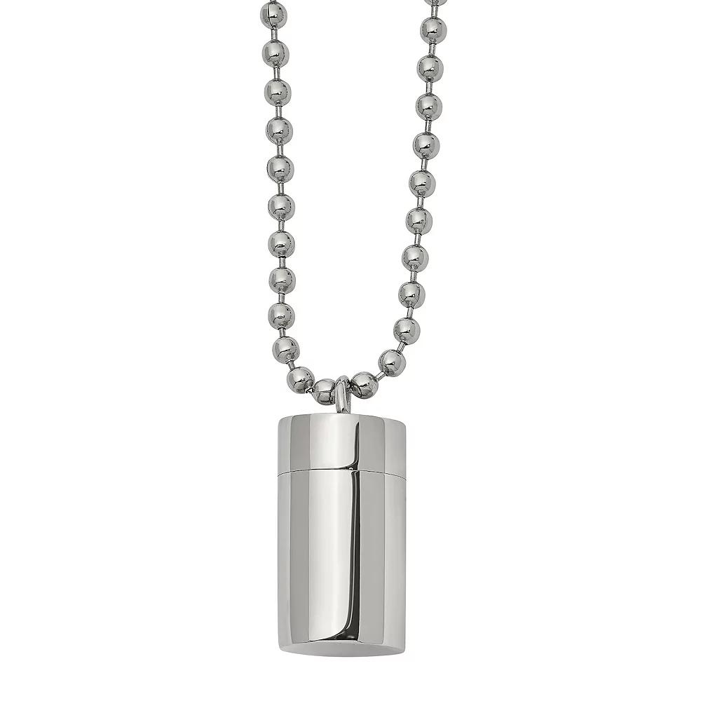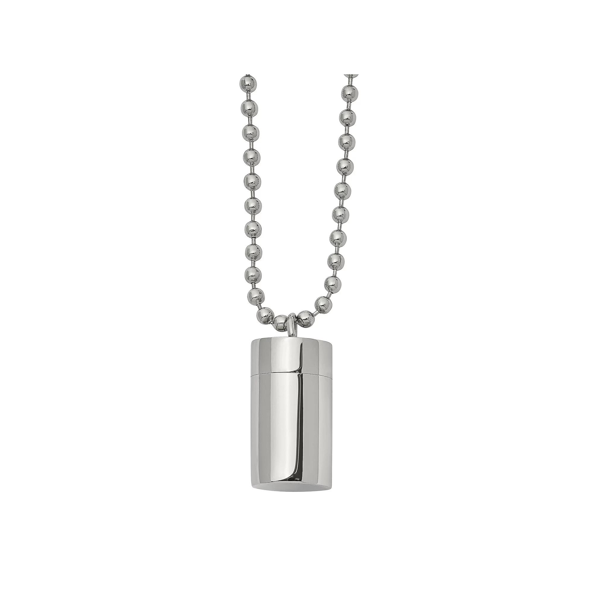Made from stainless steel, and polished to a brilliant shine, this men's capsule pendant is sure to be an everyday favorite. Made from stainless steel, and polished to a brilliant shine, this men's capsule pendant is sure to be an everyday favorite. Pendant size: 24.06 mm x 10.97 mm Chain length: 22 in. Chain type: ball Metal: stainless steel Finish: polished Packaging: boxed Please note, due to the high value of this item, a signature may be required upon delivery. Size: 22". Color: White. Gender: male. Age Group: adult.