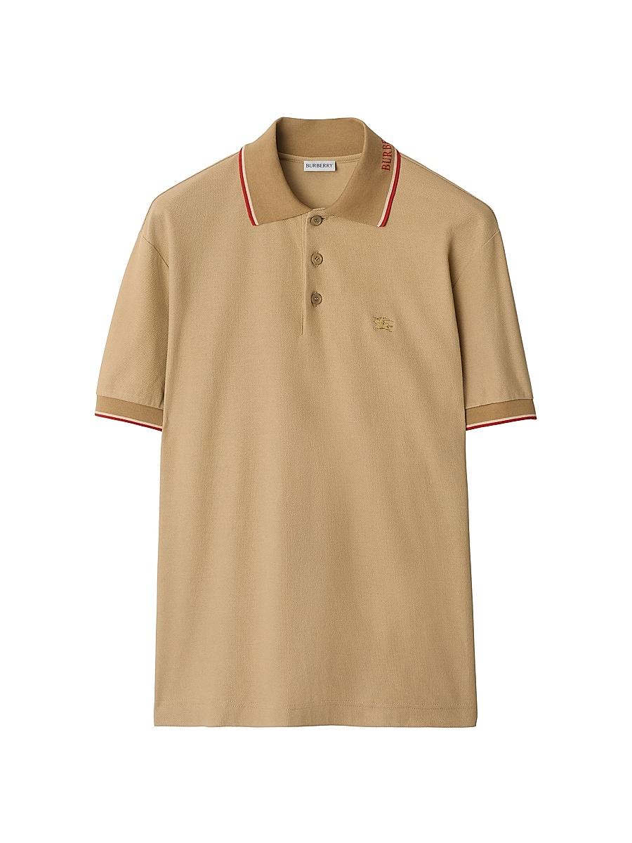 Crafted of cotton, this Burberry polo shirt features contrast tipped trim at the spread collar and cuffs. Spread collar Short sleeves Button-front closure 100% cotton Trim: 78% cotton/ 18% polyamide/ 4% elastane Machine wash Made in Portugal SIZE & FIT About 28.25 from shoulder to hem Model measurements: 62 tall, 40 chest, 31 waist Model is wearing a US size Medium ABOUT THE BRAND Founded in 1856 by 21-year-old Thomas Burberry, the brand set out with a mission to stylishly protect against British weather-and Burberrys iconic trench coat was born. In the 1920s, its renowned check pattern was introduced as the coats lining. Today, under Creative Director Daniel Lee, the heritage brand continues to evolve and create timelessly classic mens, womens and kids pieces, along with beauty. Men Advcd Dsgnr - Burberry > Burberry > Saks Fifth Avenue > Barneys. Burberry. Color: Chalk. Size: Large.
