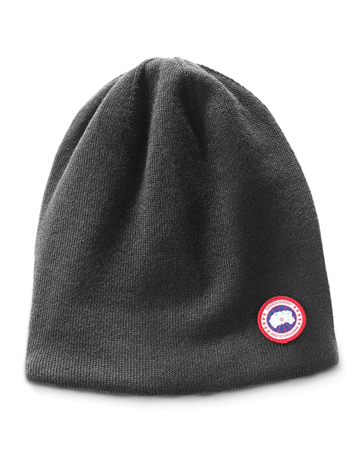 Stretch wool hat with embroidered logo patch 8.5W x 9.75H Wool/elastane Dry clean Made in Italy ABOUT THE BRAND Since its launch in 1957, Canada Gooses durable, ultra-warm parkas have become cold-weather staples worldwide. Using strong technical fabric, sustainably sourced down insulation and fur trim, the coats are designed to withstand extreme temperatures. Adapting to all seasons, the label designs luxe lightweight jackets, vests and accessories-and even cozy knit layers. Men Accessories - Fashion Accessories > Canada Goose > Saks Fifth Avenue > Barneys. Canada Goose. Color: Iron Grey.
