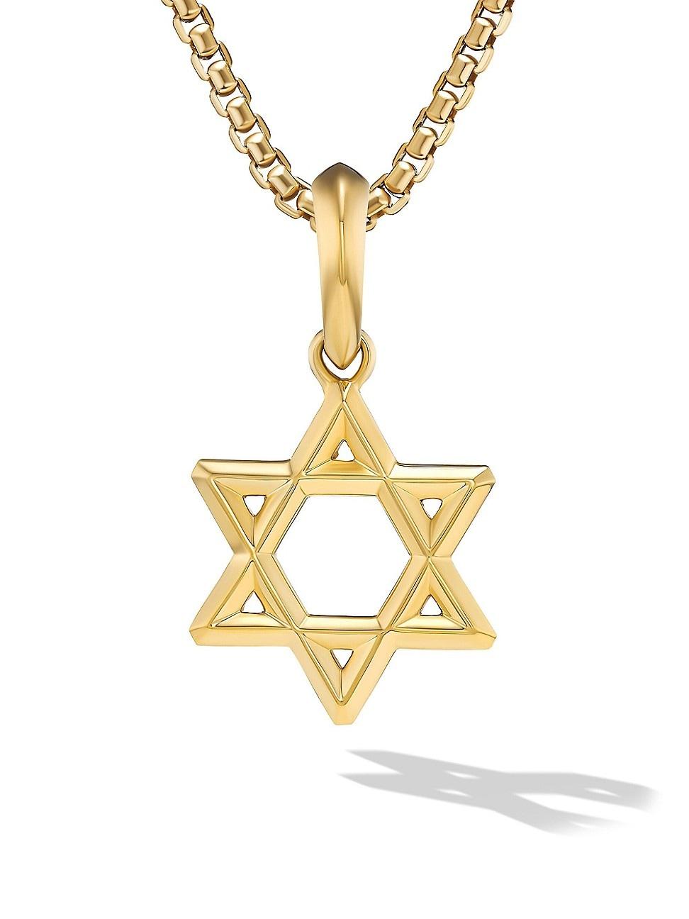 Mens Star of David Pendant in 18K Yellow Gold, 19MM