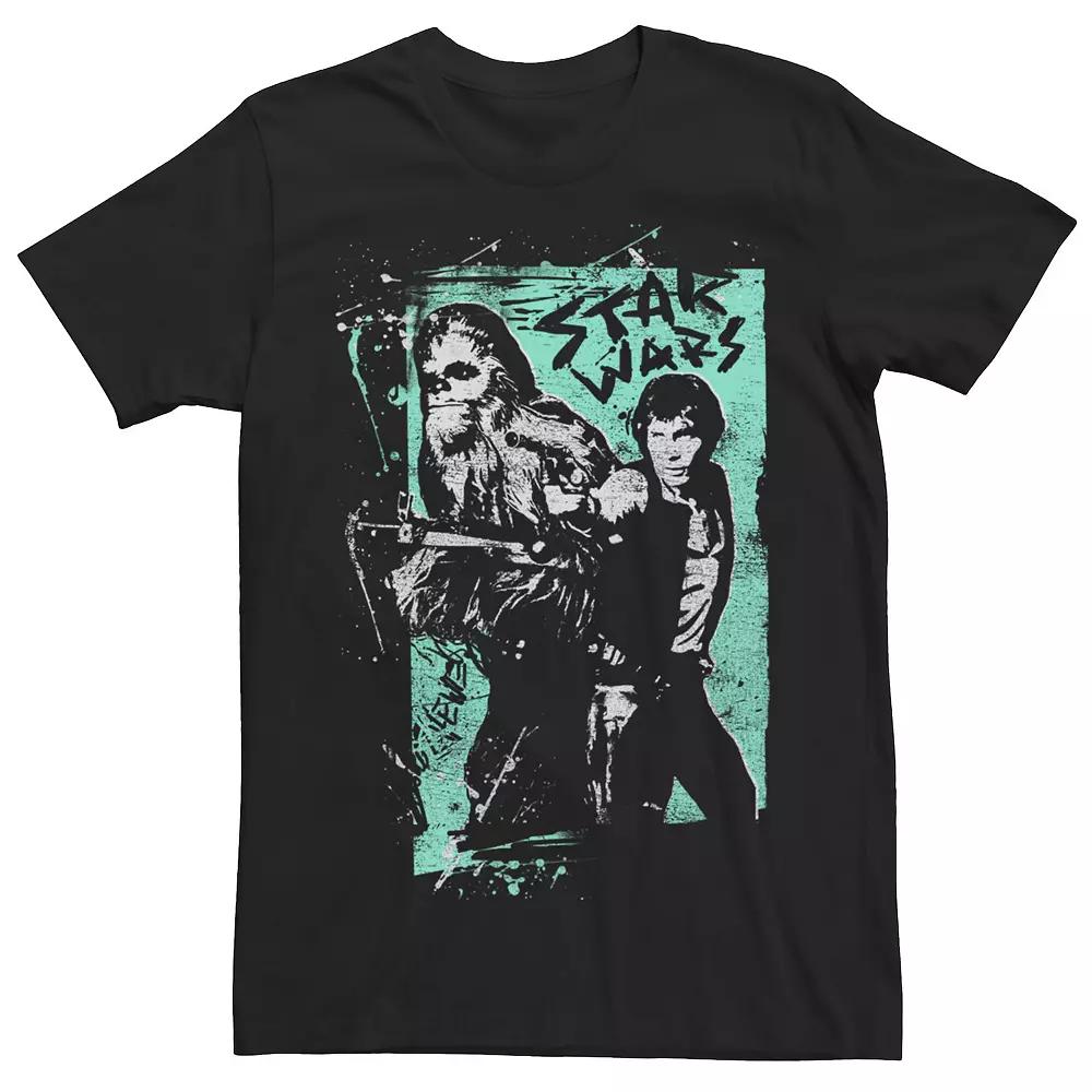 Mens Star Wars A New Hope Chewie & Han Solo Paint Splatter Tee, Men's,