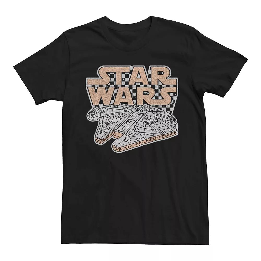 Mens Star Wars Millennium Falcon Retro Checkered Graphic Tee