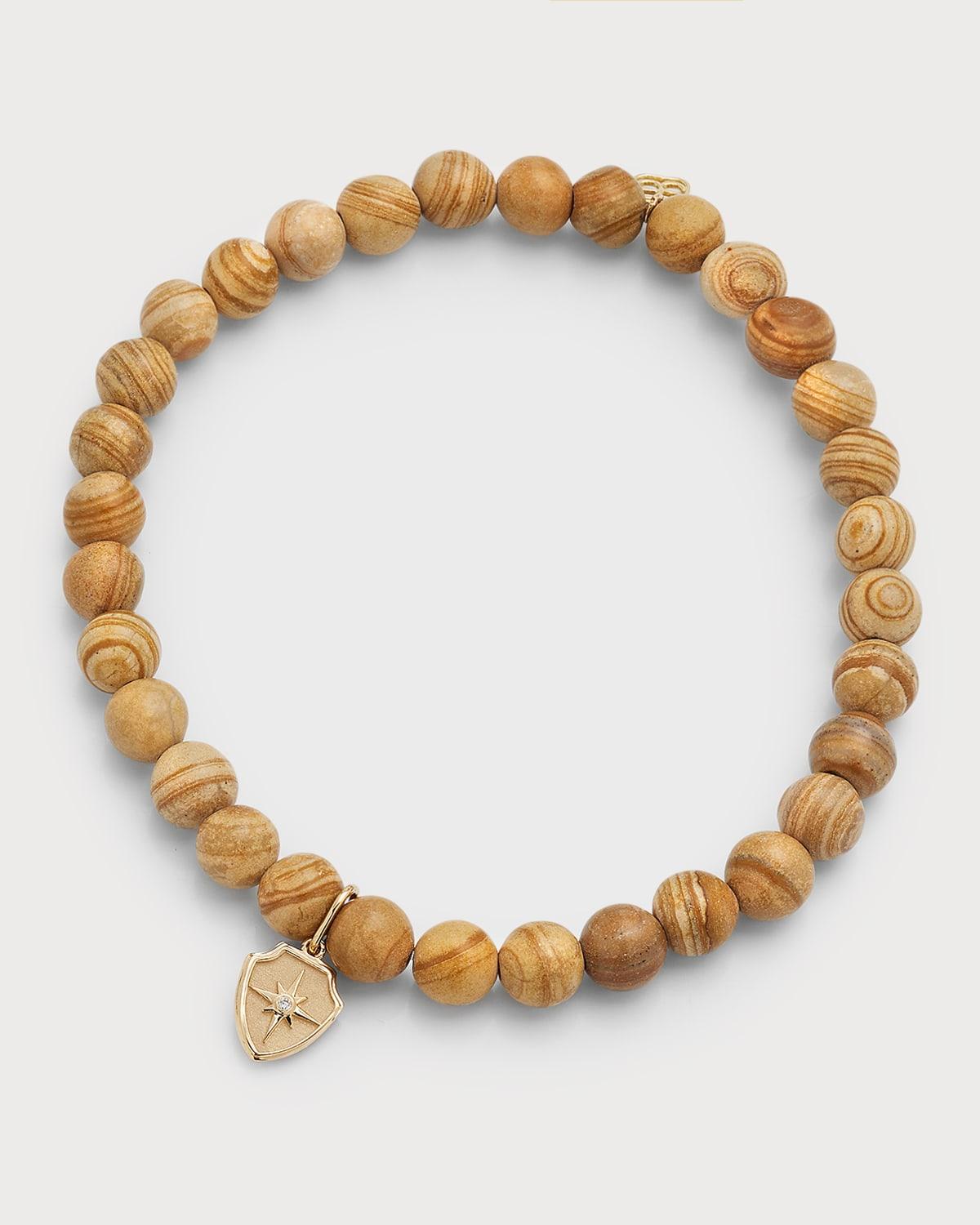 Sydney Evan jasper bead bracelet 14-karat yellow gold starburst charm with brilliant round diamond at center 0.0051 total diamond carat weight Slip-on style Made in USA