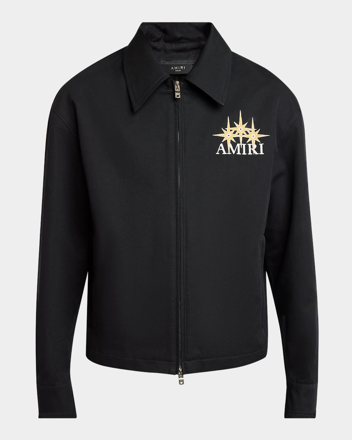 Amiri blouson jacket with embroidered starburst motif Point collar Two-way zip closure Side zip pockets Long sleeves Adjustable snap cuffs Cotton Dry clean Made in Italy