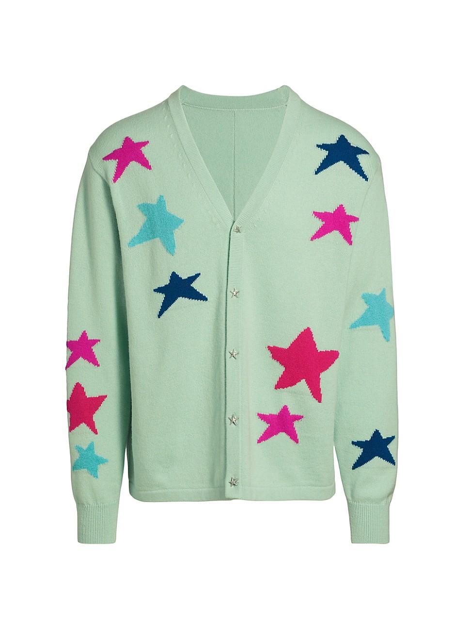 The V-neck Starry Night cardigan from Kids Worldwide is knit from a luxe wool and cashmere blend adorned with bright intarsia stars. V-neck Long sleeves Button-front closure 70% wool/30% cashmere Dry clean Imported SIZE & FIT About 30 from shoulder to hem Model measurements: 62 tall, 40 chest, 31 waist Model is wearing a US size Medium ABOUT THE BRAND Kids Worldwide was founded in 2020 on the idea that children of all backgrounds have the power to transform the world through creativity. The labels playful everyday kids clothing ties into its ethos; founder Robbie Stuart is committed to using art to facilitate educational and mentorship opportunities, forming a special partnership to benefit the River Fund NY. Mens Adv Contemporary - Trend Collections > Kids Worldwide > Saks Fifth Avenue > Barneys. Kids Worldwide. Color: Mint Green. Size: XS.