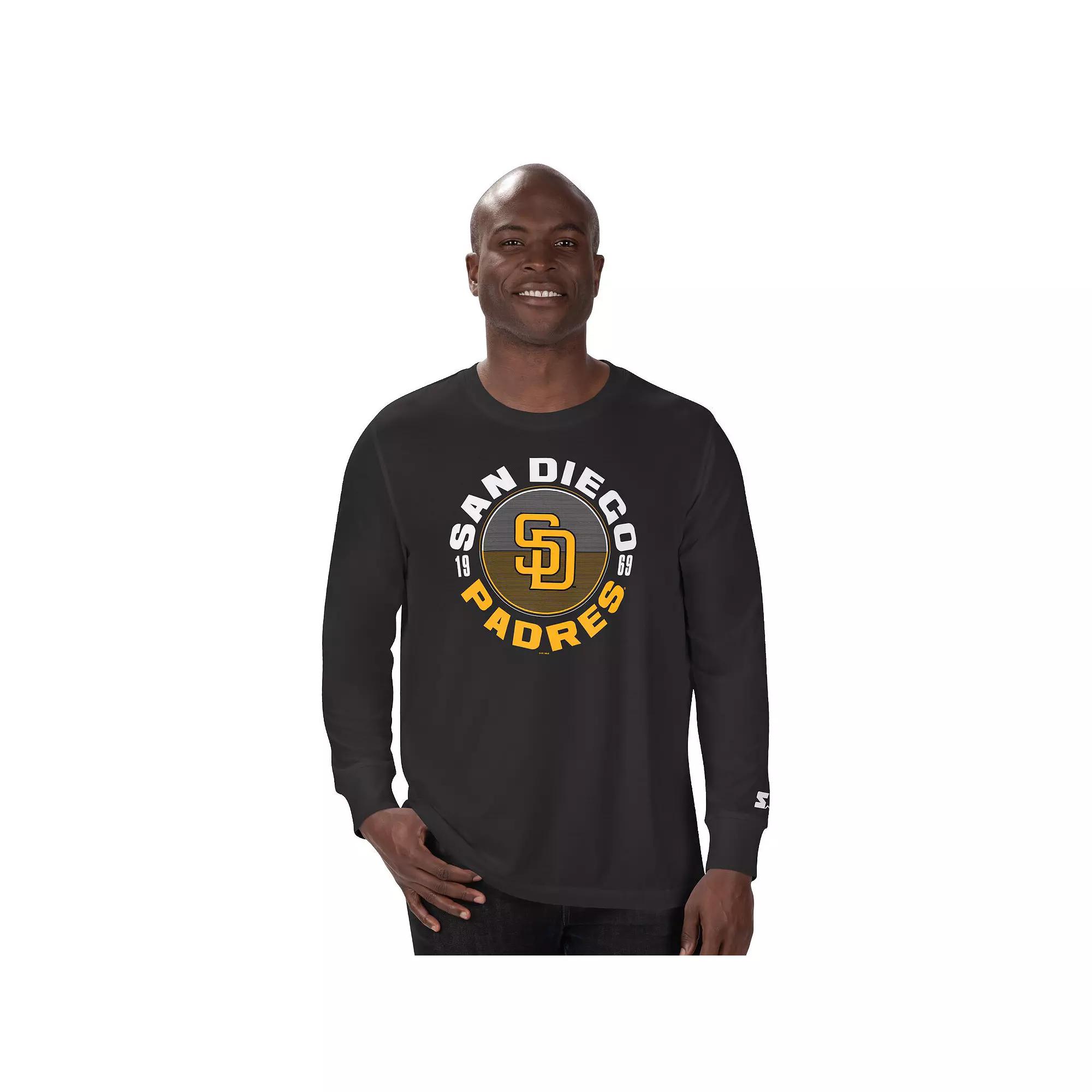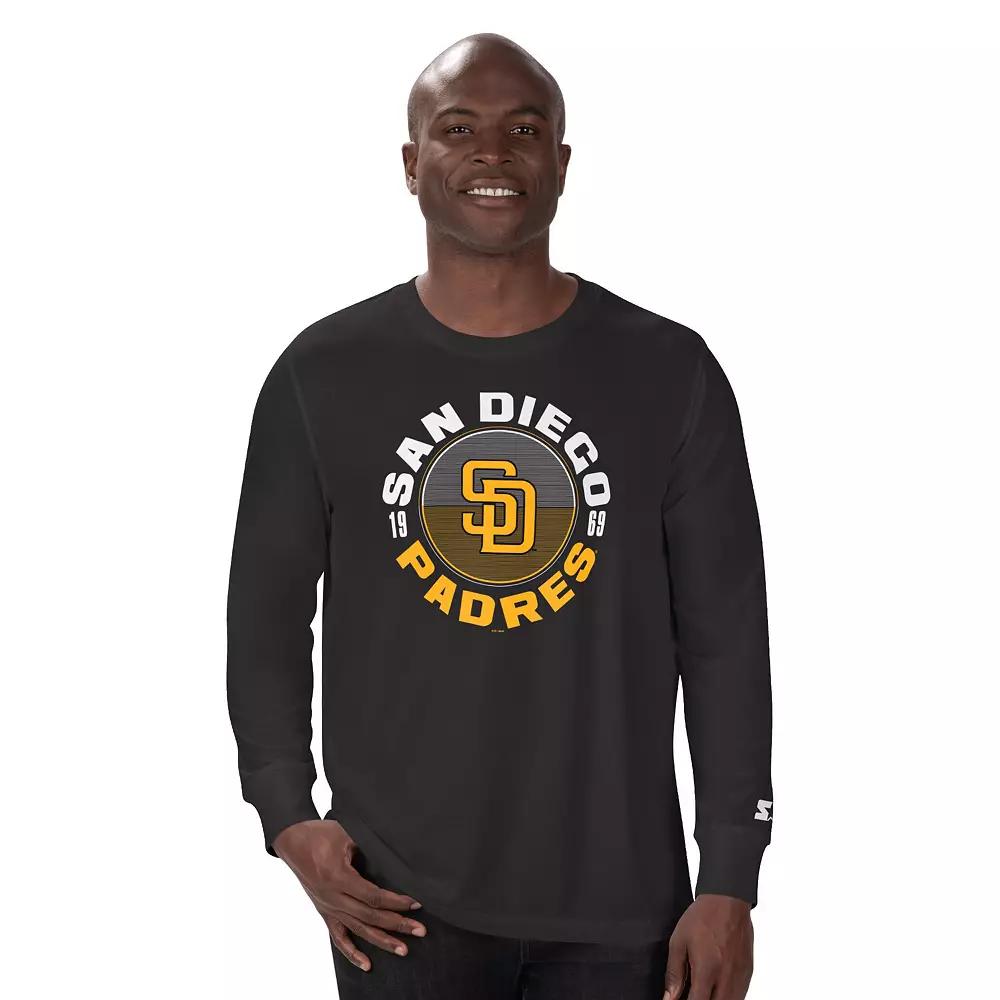 Add this Starter Halftime Long Sleeve T-Shirt to your San Diego Padres game day wardrobe. This long sleeve tee features bold, screen-printed team graphics that let everyone know who you're rooting for. Plus, the rib-knit cuffs and neckline offer a classic look that's perfect for layering during the cooler months or to wear as a stand-alone during those comfortable San Diego Padres night games.Add this Starter Halftime Long Sleeve T-Shirt to your San Diego Padres game day wardrobe. This long sleeve tee features bold, screen-printed team graphics that let everyone know who you're rooting for. Plus, the rib-knit cuffs and neckline offer a classic look that's perfect for layering during the cooler months or to wear as a stand-alone during those comfortable San Diego Padres night games.PRODUCT FEATURESImportedOfficially licensedMaterial: 60% Cotton/ 40 % PolyesterScreen print team graphicsMachine wash, tumble dry lowBrand: StarterLong sleeveRib-knit cuffs and necklineCrew neck Color: Black. Gender: male. Age Group: adult.