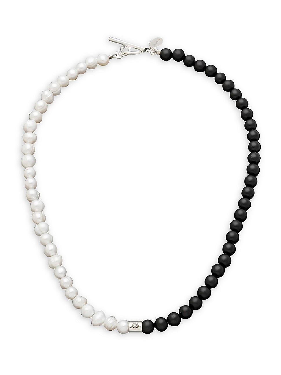 Jan Leslies bead necklace flaunts freshwater pearls, black agates, and a gleaming sterling silver spacer with an eye-catching diamond accent. Freshwater pearls Black agates Sterling silver Toggle clasp Imported SIZE Length, about 16. Men Accessories - Jewelry > Jan Leslie > Saks Fifth Avenue > Barneys. Jan Leslie. Color: Black White.