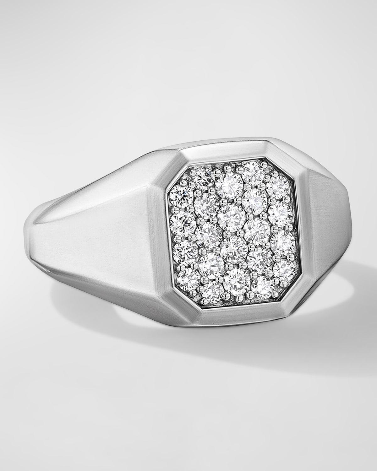 Mens Streamline Signet Ring with Diamonds in Silver, 14mm