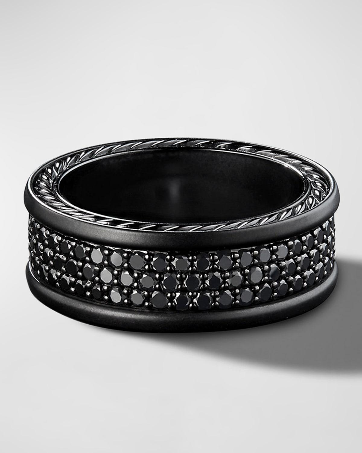 Inspired by clean lines and smooth metal surfaces, these minimalist designs are sculpted with engineered precision. Every pav diamond or colored gemstone is carefully matched for color and hand set - a tribute to DY artistry. Sterling silver Pav black diamonds, 1.95 total carat weight Ring, 8.5mm Imported. Lsd Jewelry - David Yurman > David Yurman > Saks Fifth Avenue > Barneys. David Yurman. Color: Black. Size: 9.